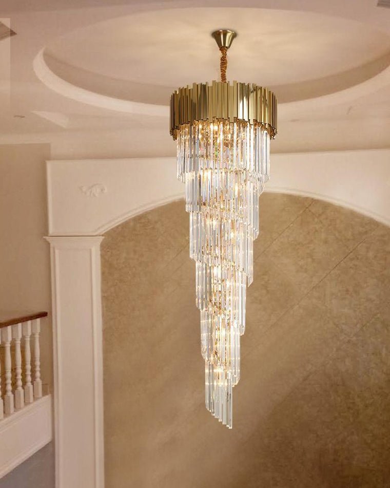 Tags: 900-1999, Art Deco, Chandelier, Crystal, gold, Staircase, Tiered