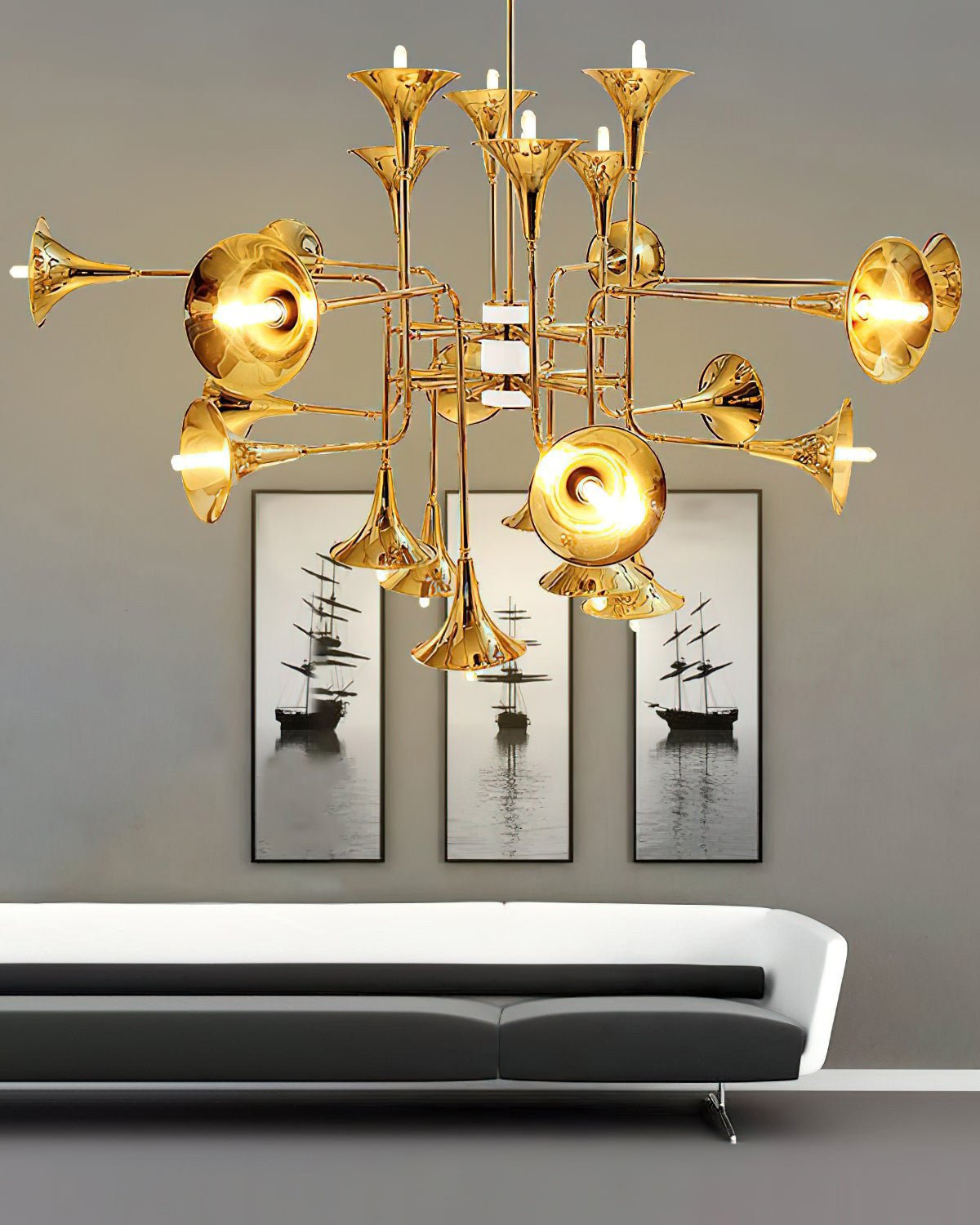 Gold Trumpet Art Deco Chandelier-WM2614