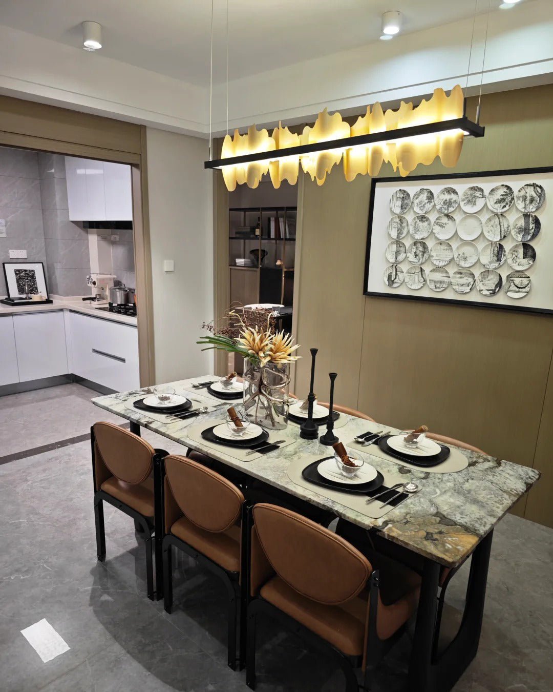 Tags: 500-899, Black, Brass/Copper/Bronze, Chandelier, contemporary, Dining Room, gold, Linear, Metal