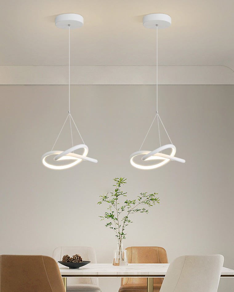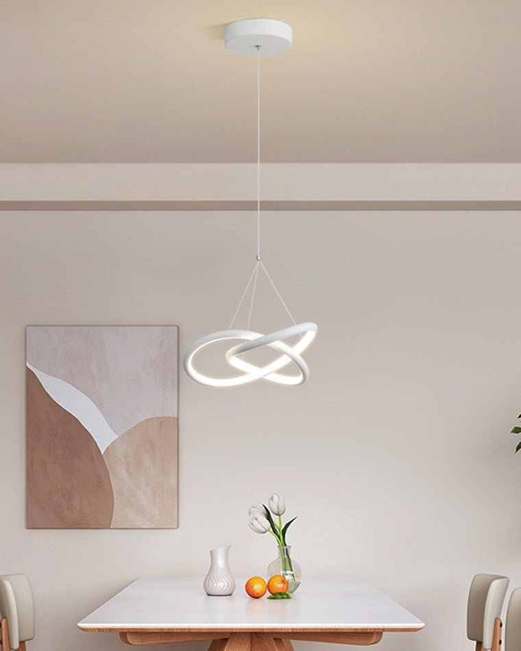 Introducing the jucci Infinity Led Pendant Light-WM2444! This contemporary statement piece is perfect for any kitchen or bedroom, adding a touch of sleek metal and timeless white to your decor. With its infinity design, this pendant light brings endless possibilities and beauty to any space.