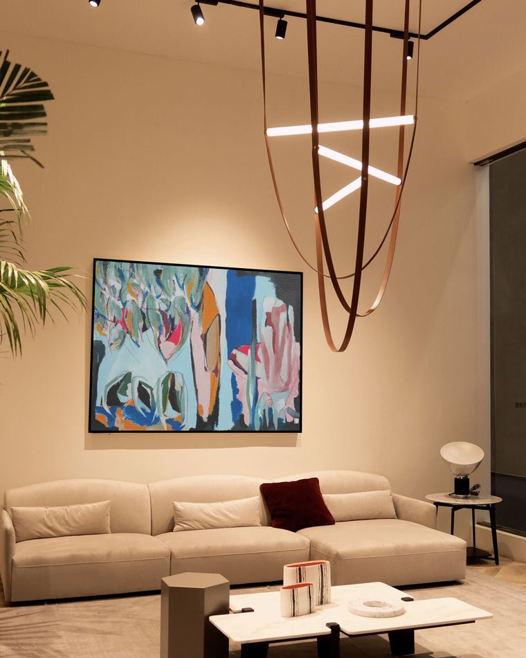 Elevate your living room or foyer with our stunning jucci Leather String Chandelier! Featuring a delicate string design crafted from luxurious leather, this chandelier adds a touch of elegance and sophistication. Transform any space into a stylish and inviting haven with this unique piece.