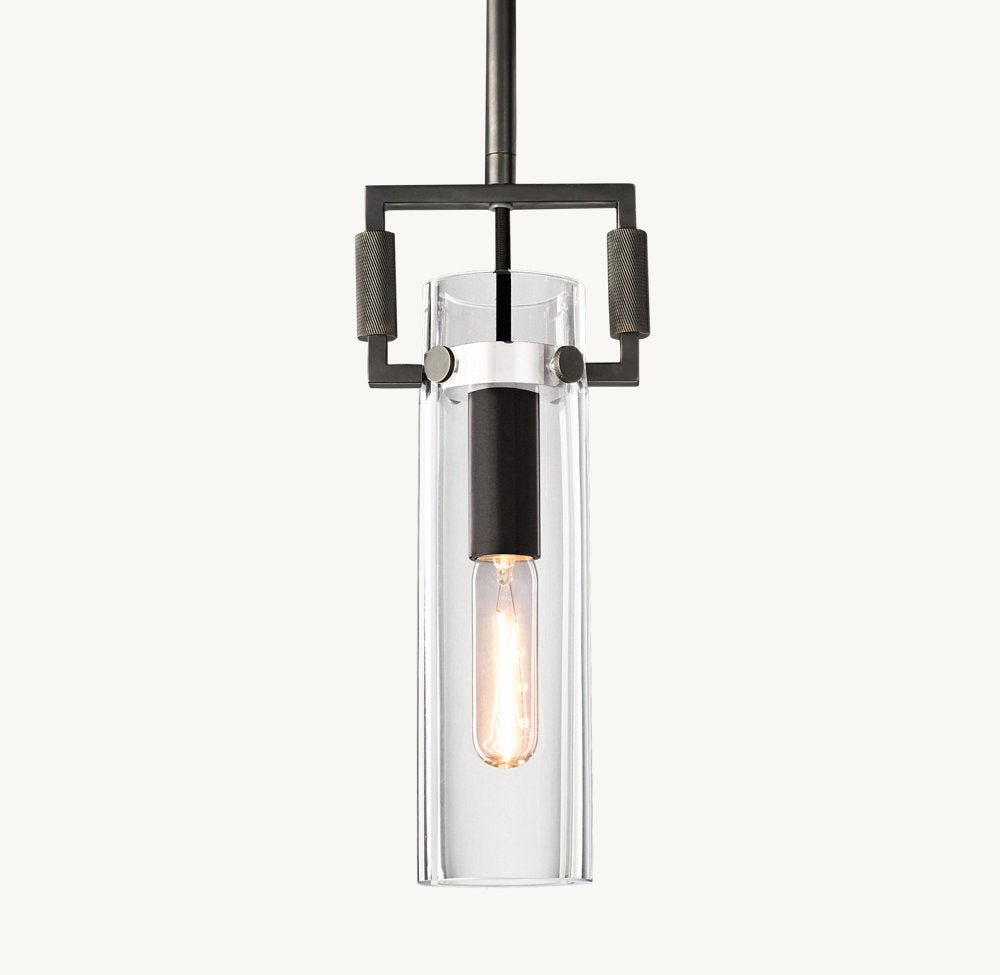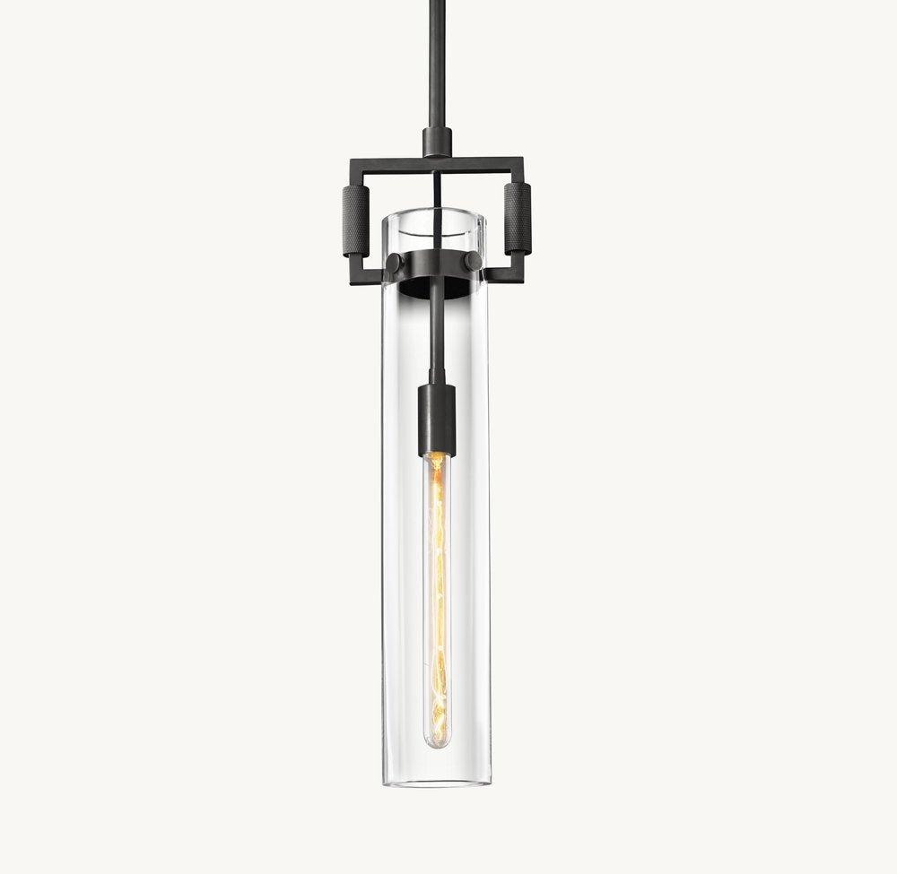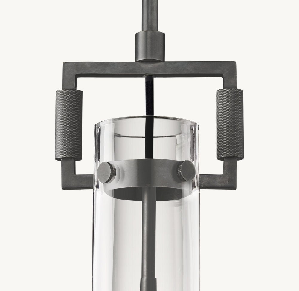 A study in positive and negative space, density and openness, strength and fragility, our Machinist Pendant by Jonathan Browning is a yin and yang exploration. Crafted of solid metal, the geometric yoke reveals its industrial inspiration. In contrast, the clear glass surround is barely there, echoing the form of a shade. An ultra-slim Edison bulb housed within reveals arresting filaments of light.