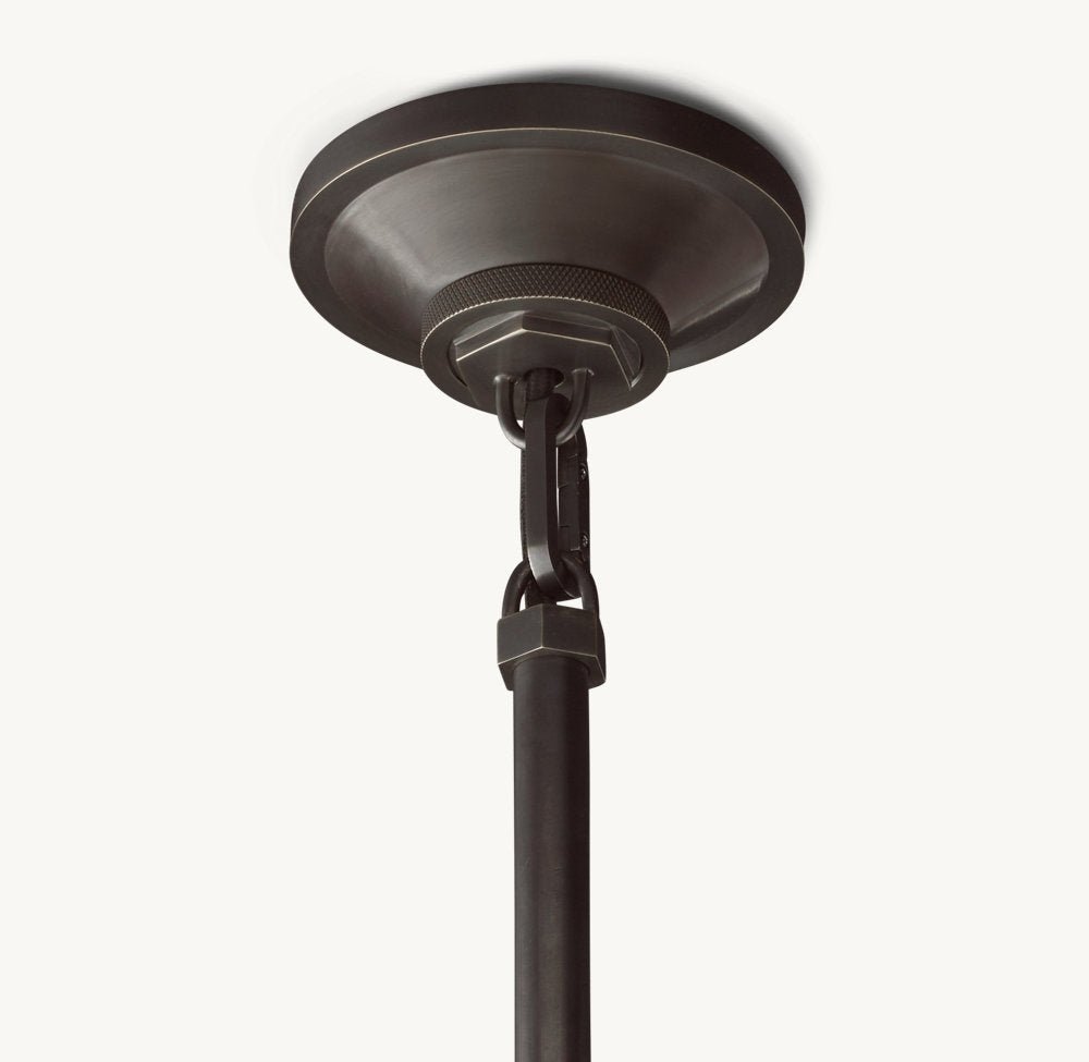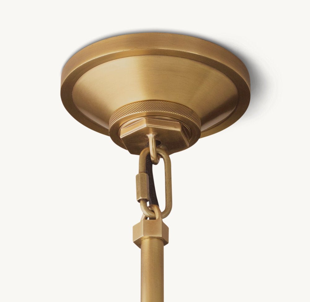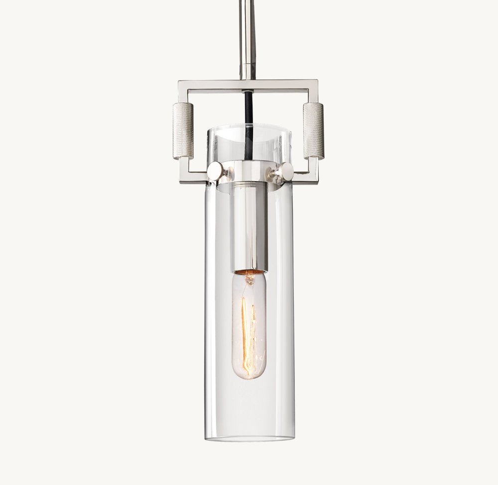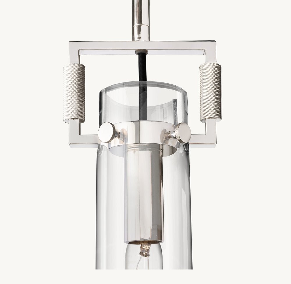 A study in positive and negative space, density and openness, strength and fragility, our Machinist Pendant by Jonathan Browning is a yin and yang exploration. Crafted of solid metal, the geometric yoke reveals its industrial inspiration. In contrast, the clear glass surround is barely there, echoing the form of a shade. An ultra-slim Edison bulb housed within reveals arresting filaments of light.