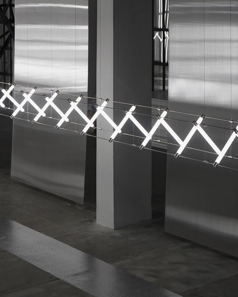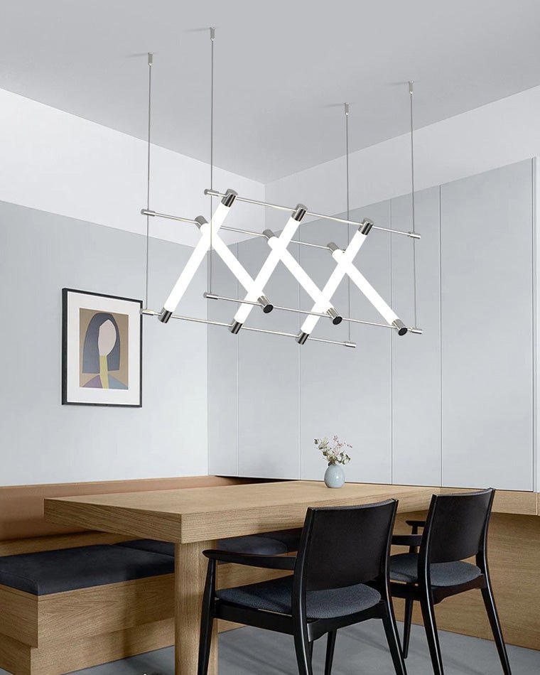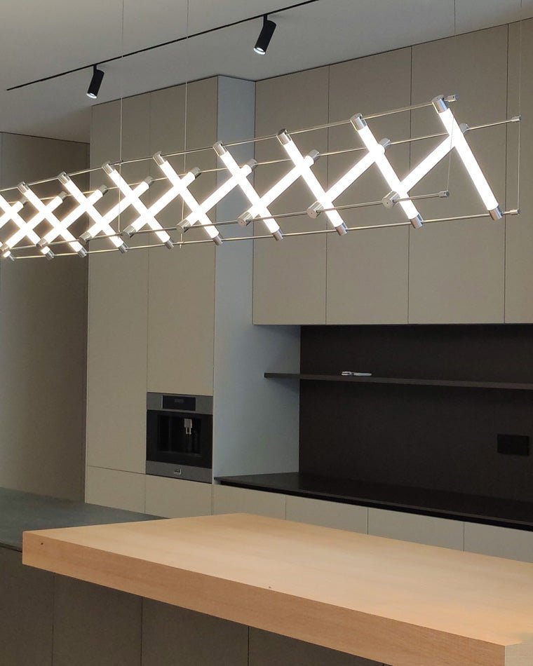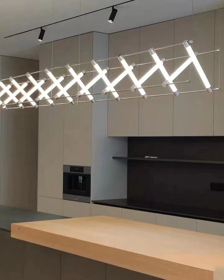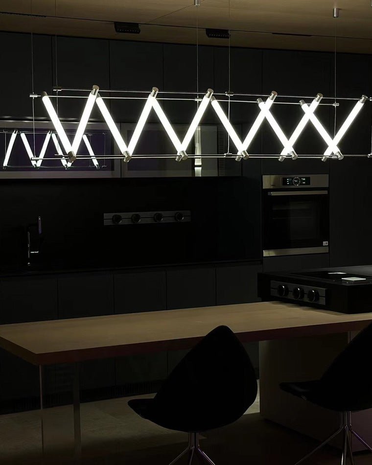 Adorn your home with this elegantly modern jucci Long Strip Maza Chandelier-WM2134! Perfect for indoor spaces such as kitchen, dining room, and restaurant, this contemporary light fixture will be a decorative and artistic addition to any interior. Its LED lighting creates a luxurious, minimalist look, while its linear shape and Nordic Scandinavian inspired style offer a bold statement.
