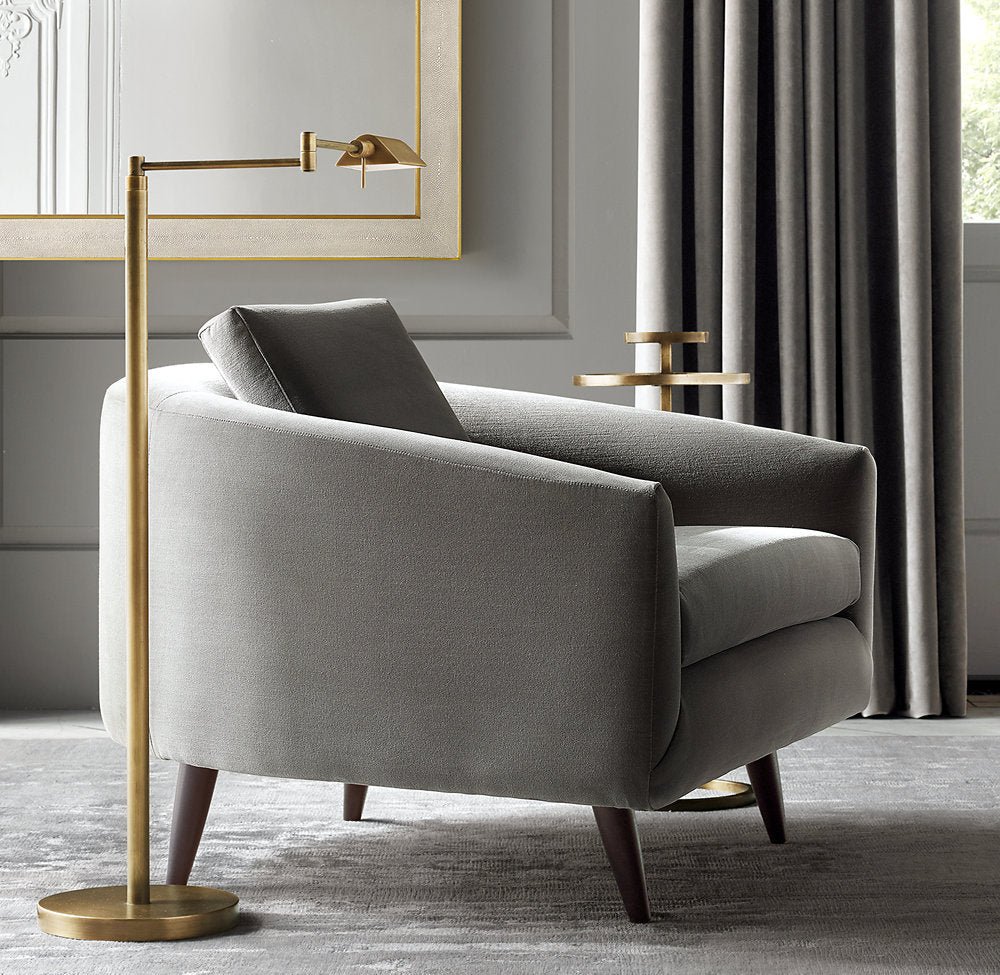 We’ve adapted a French design, downsizing its classic triangular shade while preserving its Gallic good taste. Glides at a touch to direct down-pointing light where needed.
