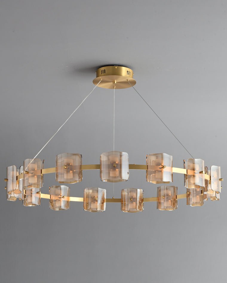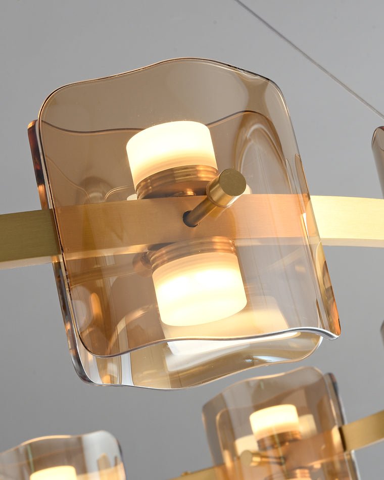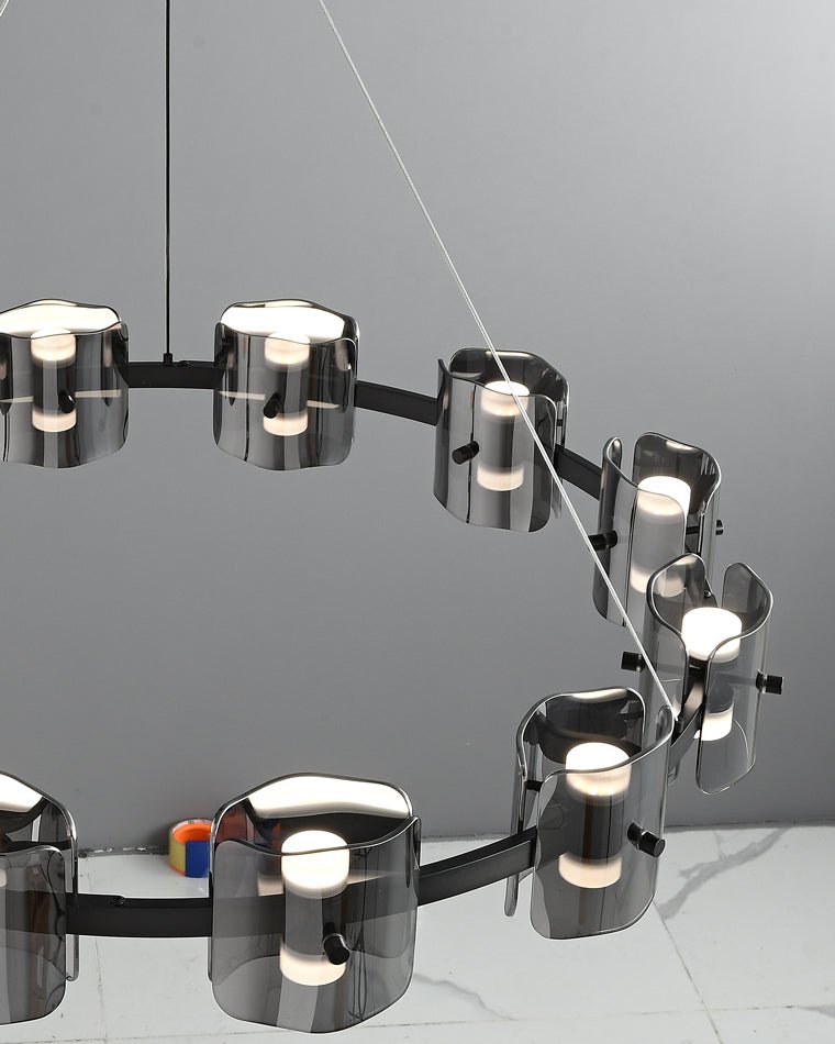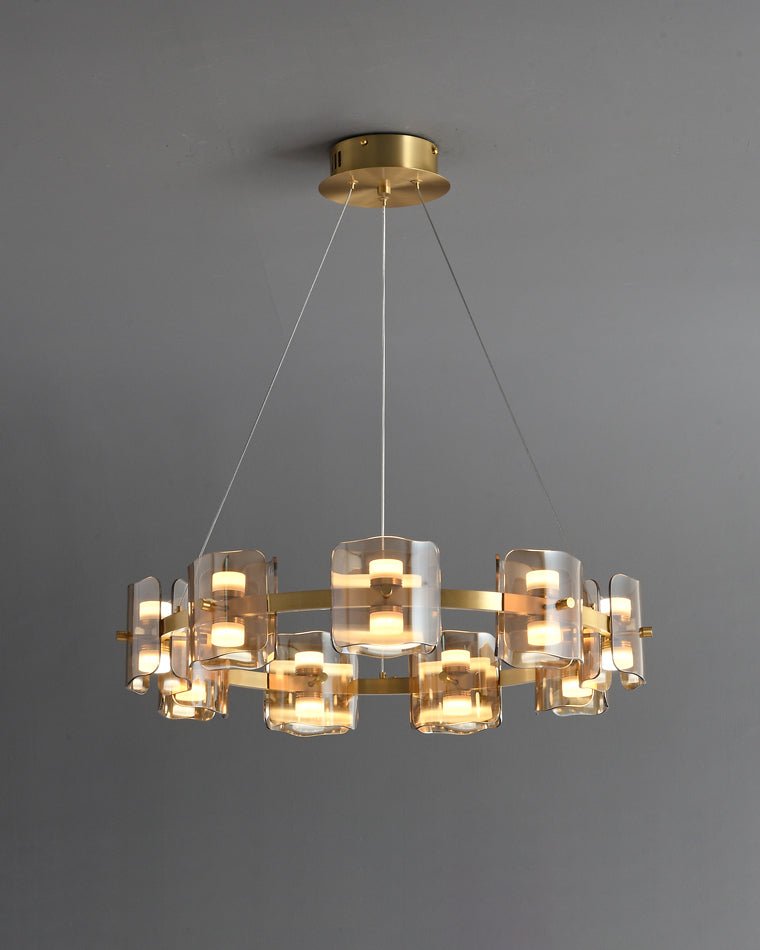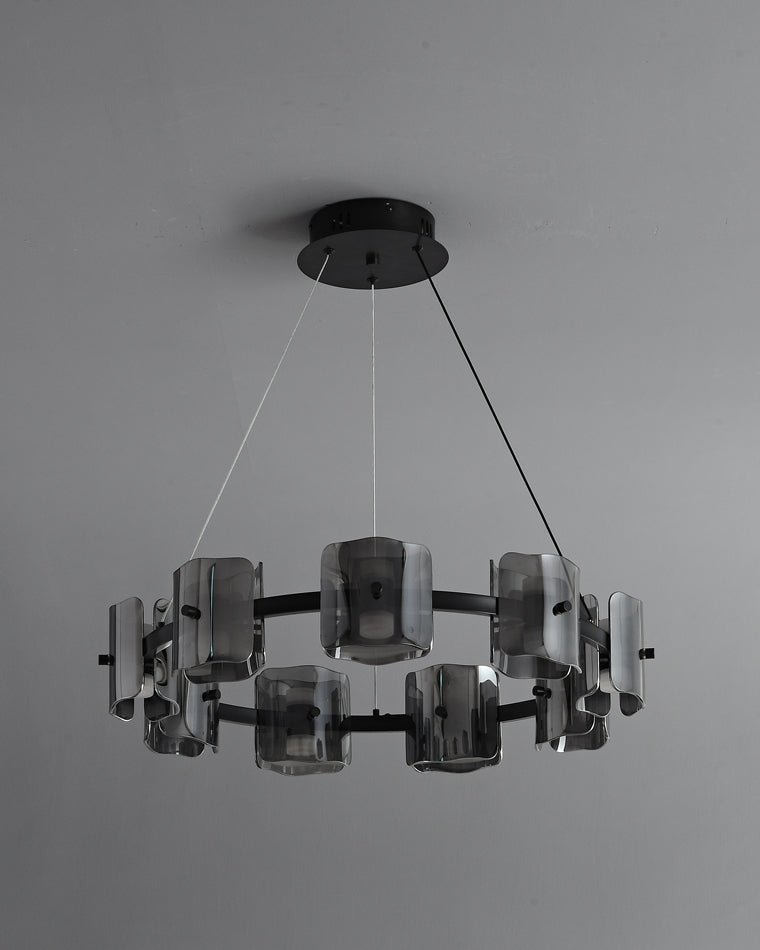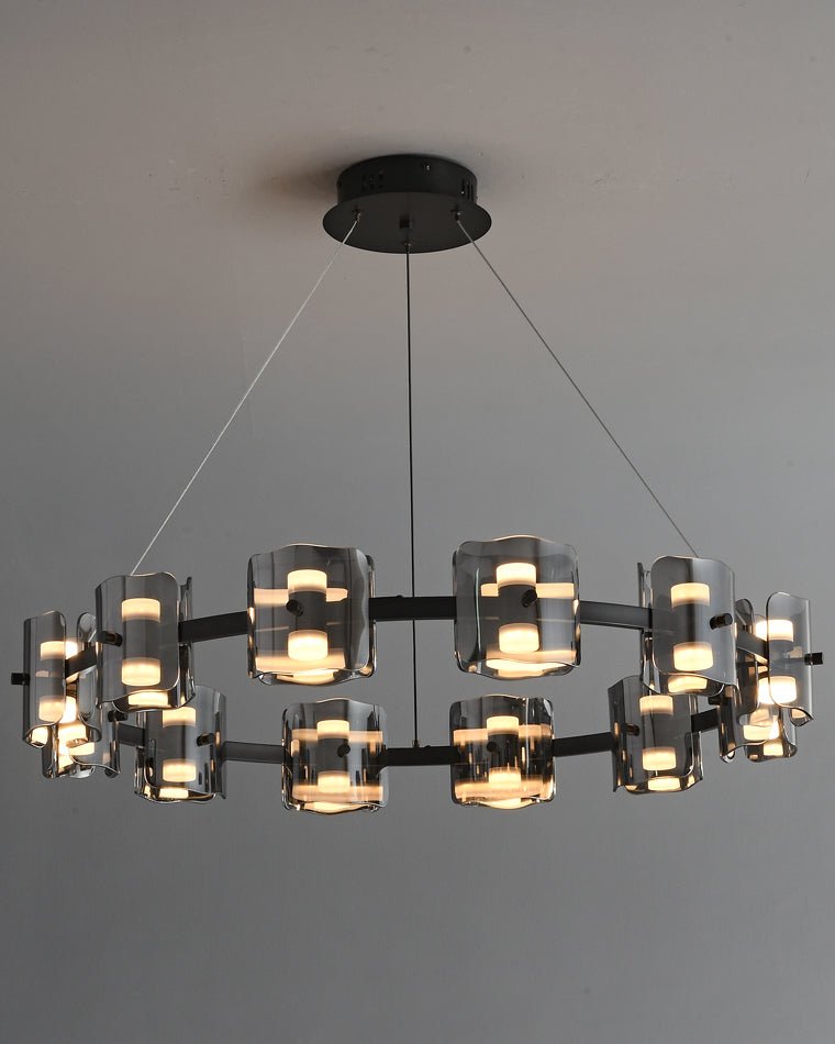 Illuminate your space with the stunning jucci Modern Candle Round Chandelier-WM2218. With two options of smoked or amber glass tiles, this contemporary chandelier exudes a luxurious ambiance. The round design, coupled with an oil black and brushed brass finish, adds a touch of elegance. Enjoy the warm glow of a pillar candle in style.