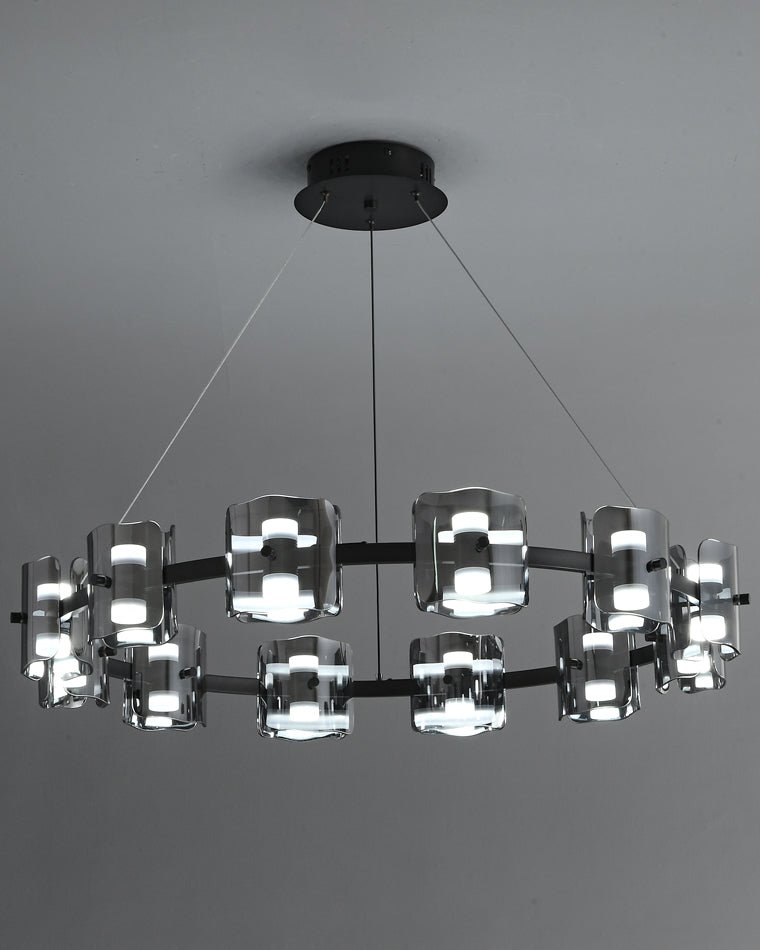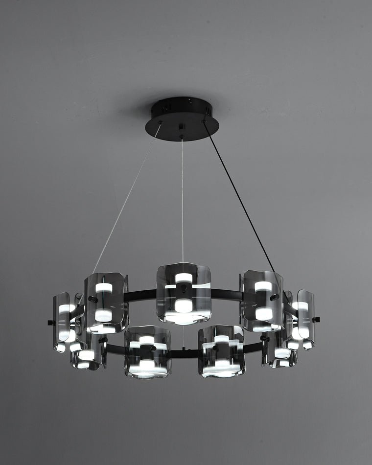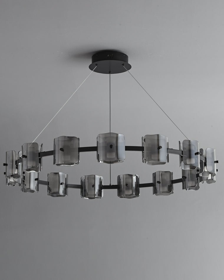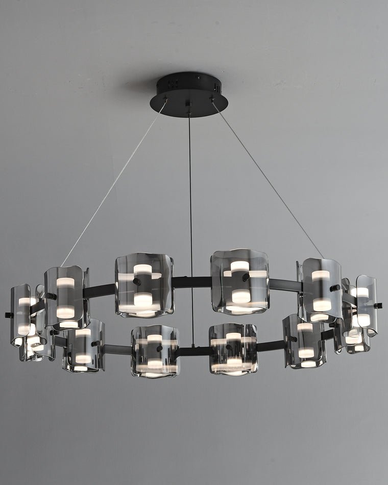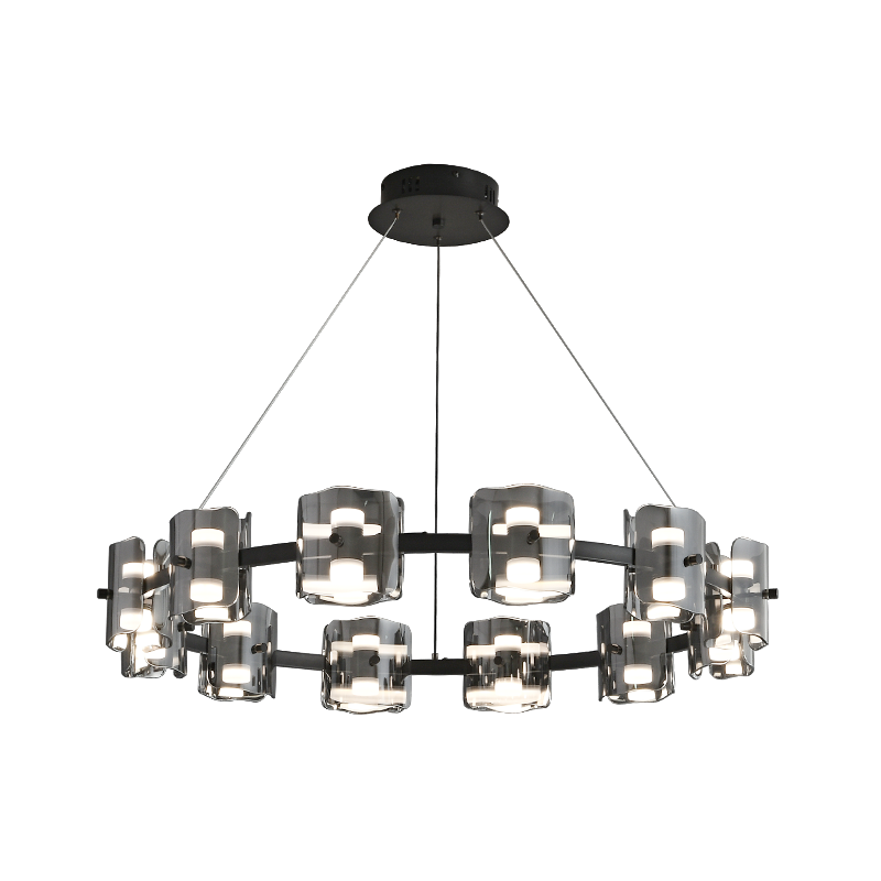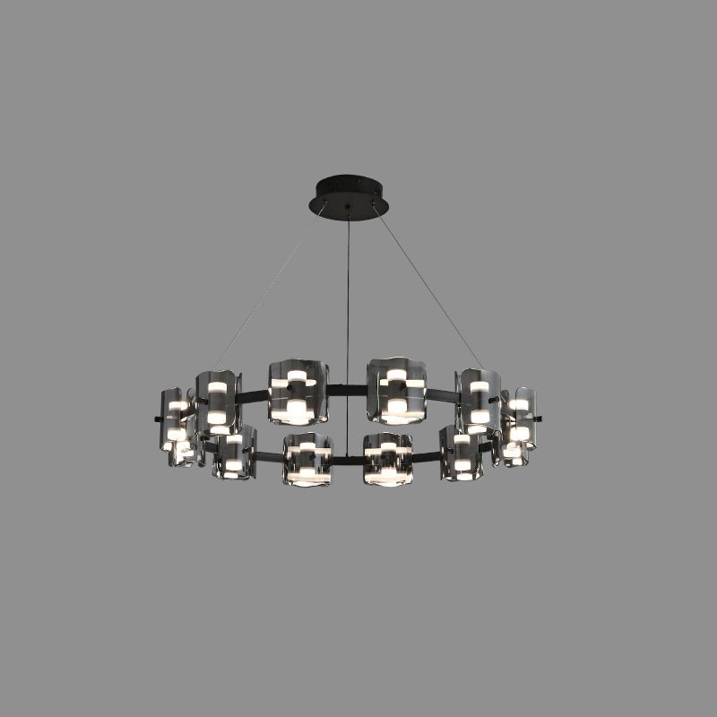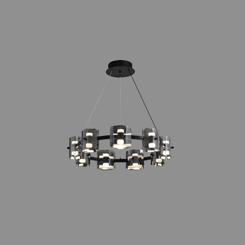 Illuminate your space with the stunning jucci Modern Candle Round Chandelier-WM2218. With two options of smoked or amber glass tiles, this contemporary chandelier exudes a luxurious ambiance. The round design, coupled with an oil black and brushed brass finish, adds a touch of elegance. Enjoy the warm glow of a pillar candle in style.
