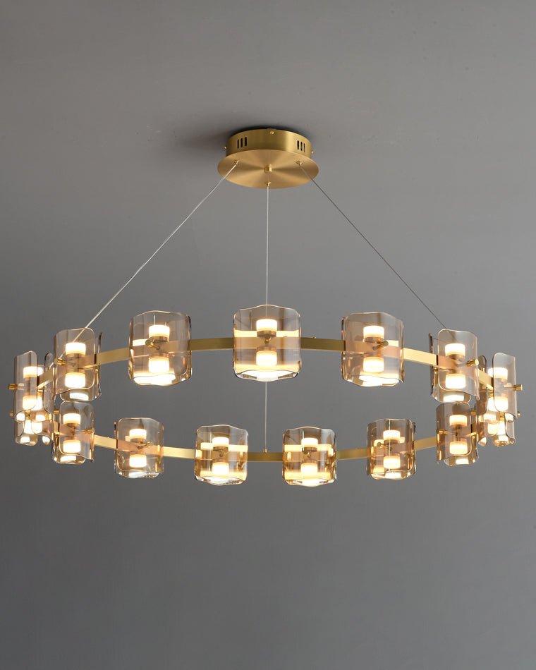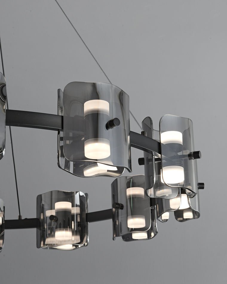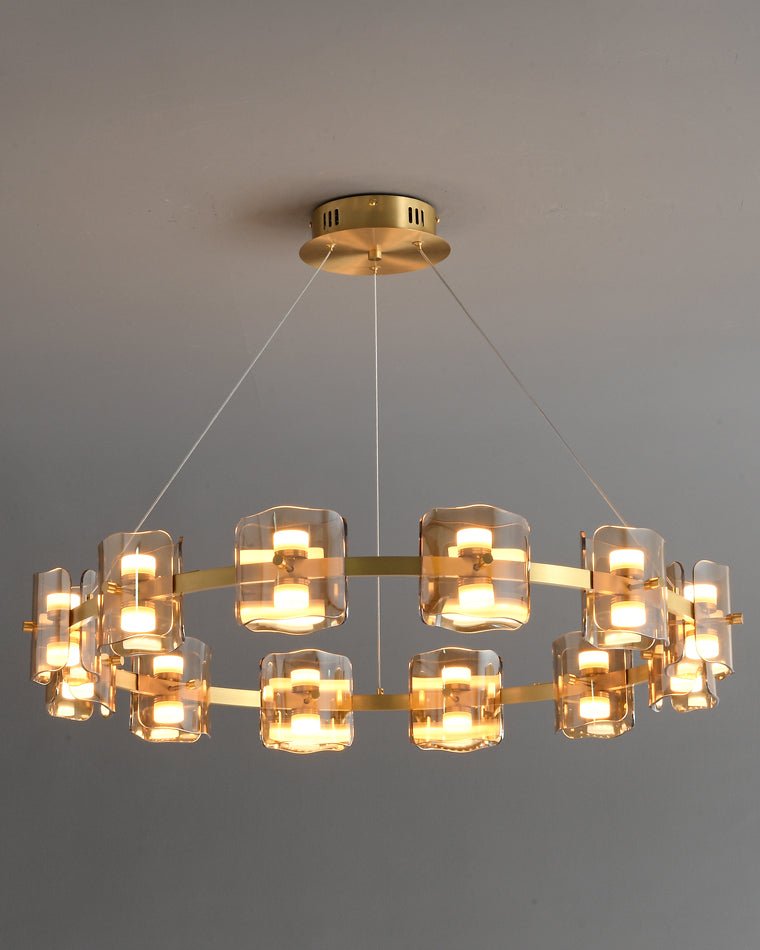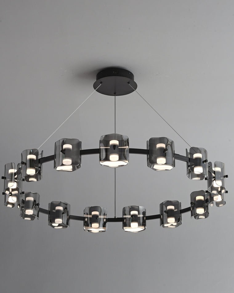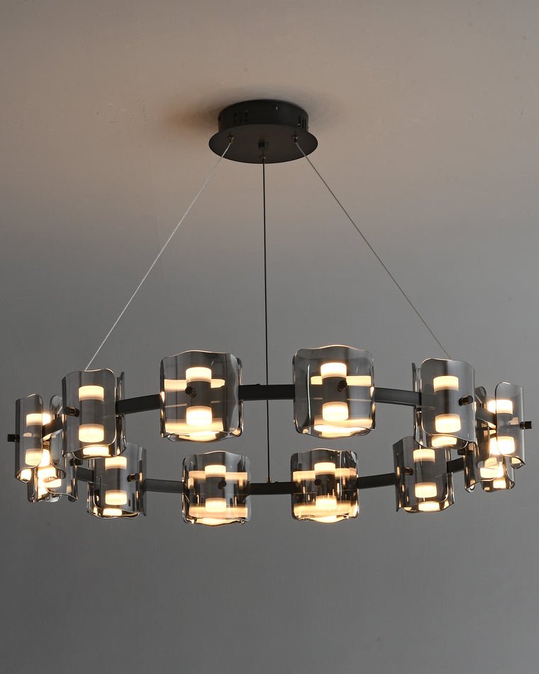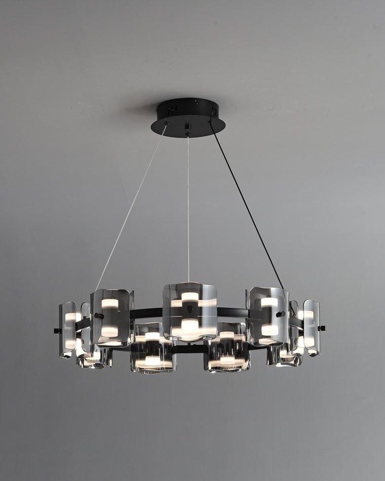 Illuminate your space with the stunning jucci Modern Candle Round Chandelier-WM2218. With two options of smoked or amber glass tiles, this contemporary chandelier exudes a luxurious ambiance. The round design, coupled with an oil black and brushed brass finish, adds a touch of elegance. Enjoy the warm glow of a pillar candle in style.
