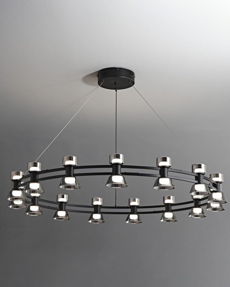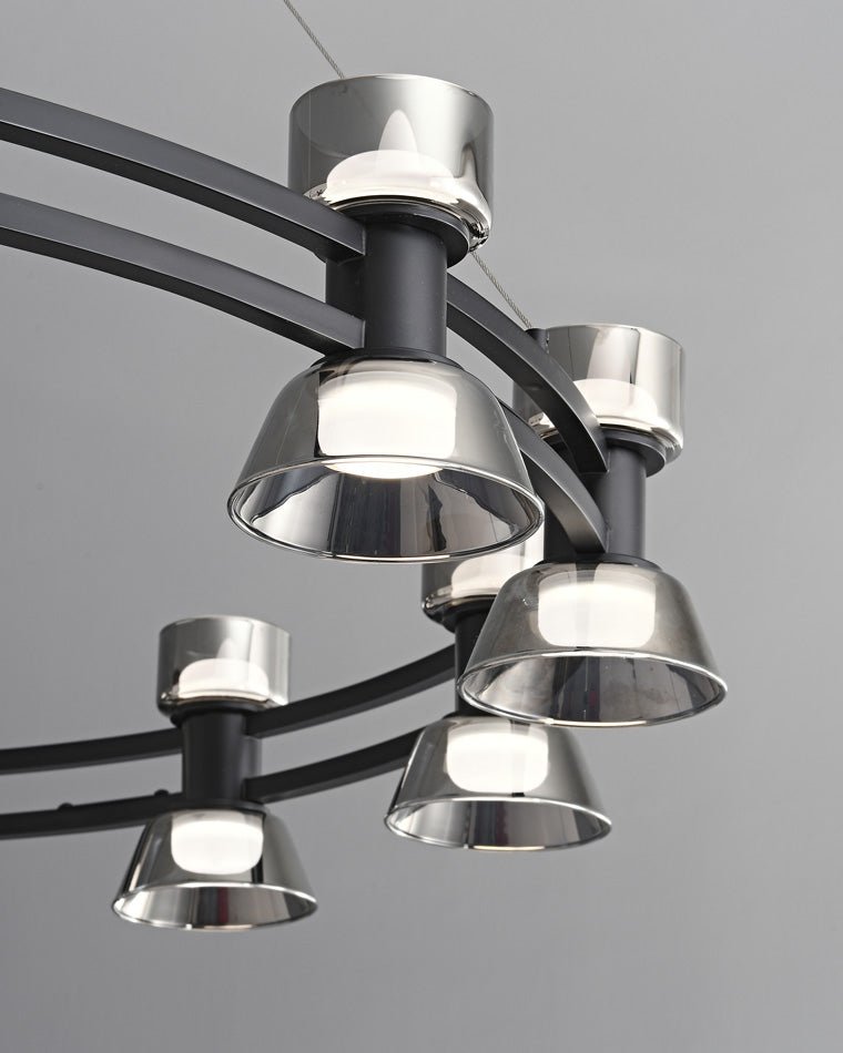 Tags: 500-899, 900-1999, Black, Brass/Copper/Bronze, Chandelier, contemporary, Dining Room, Glass, gold, Pendant light, Round, Tiered