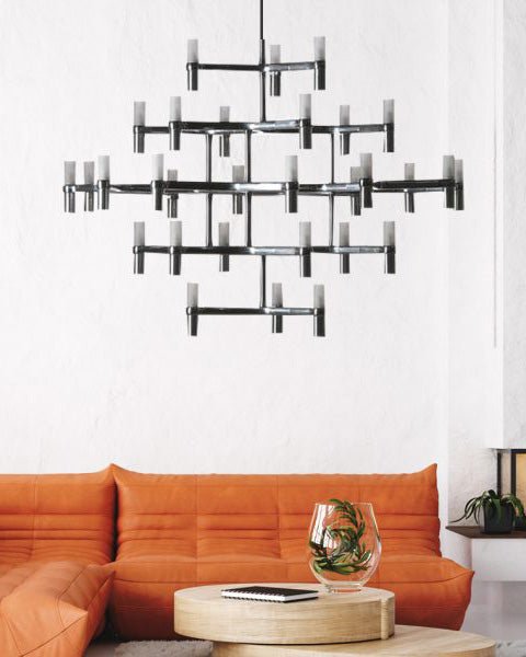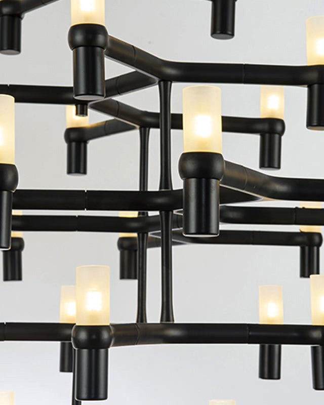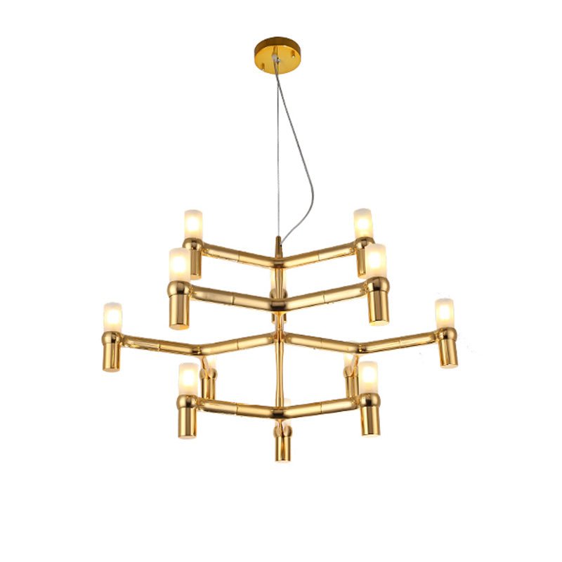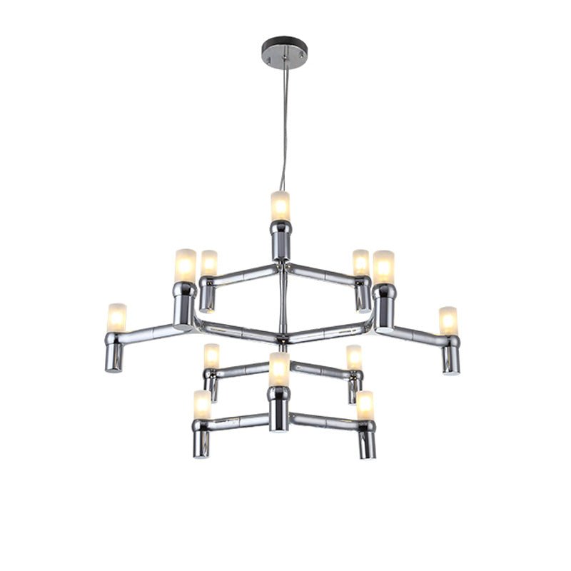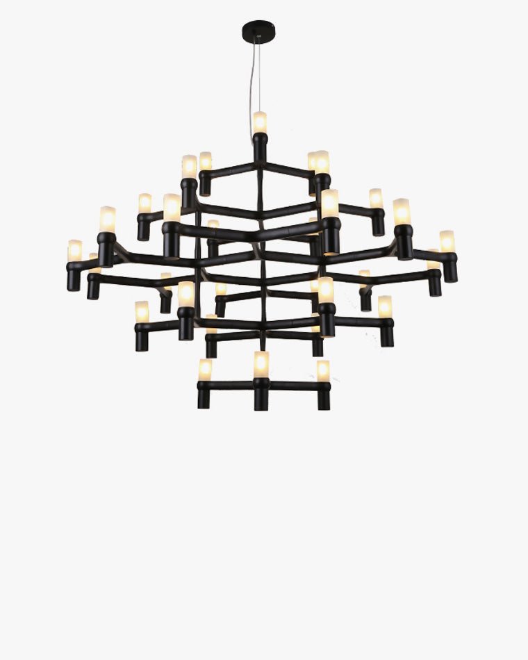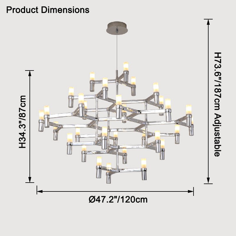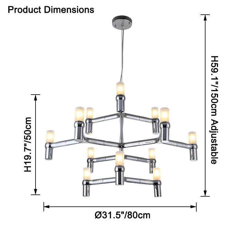 Elevate your home with the sleek and sophisticated jucci Modern Tiered Candlestick Chandelier. Crafted from contemporary materials such as metal and glass, this chandelier exudes elegance and style. Perfect for any room, from the dining room to the kitchen to the living room, add a touch of luxury with this black, chrome, gold, and white piece.