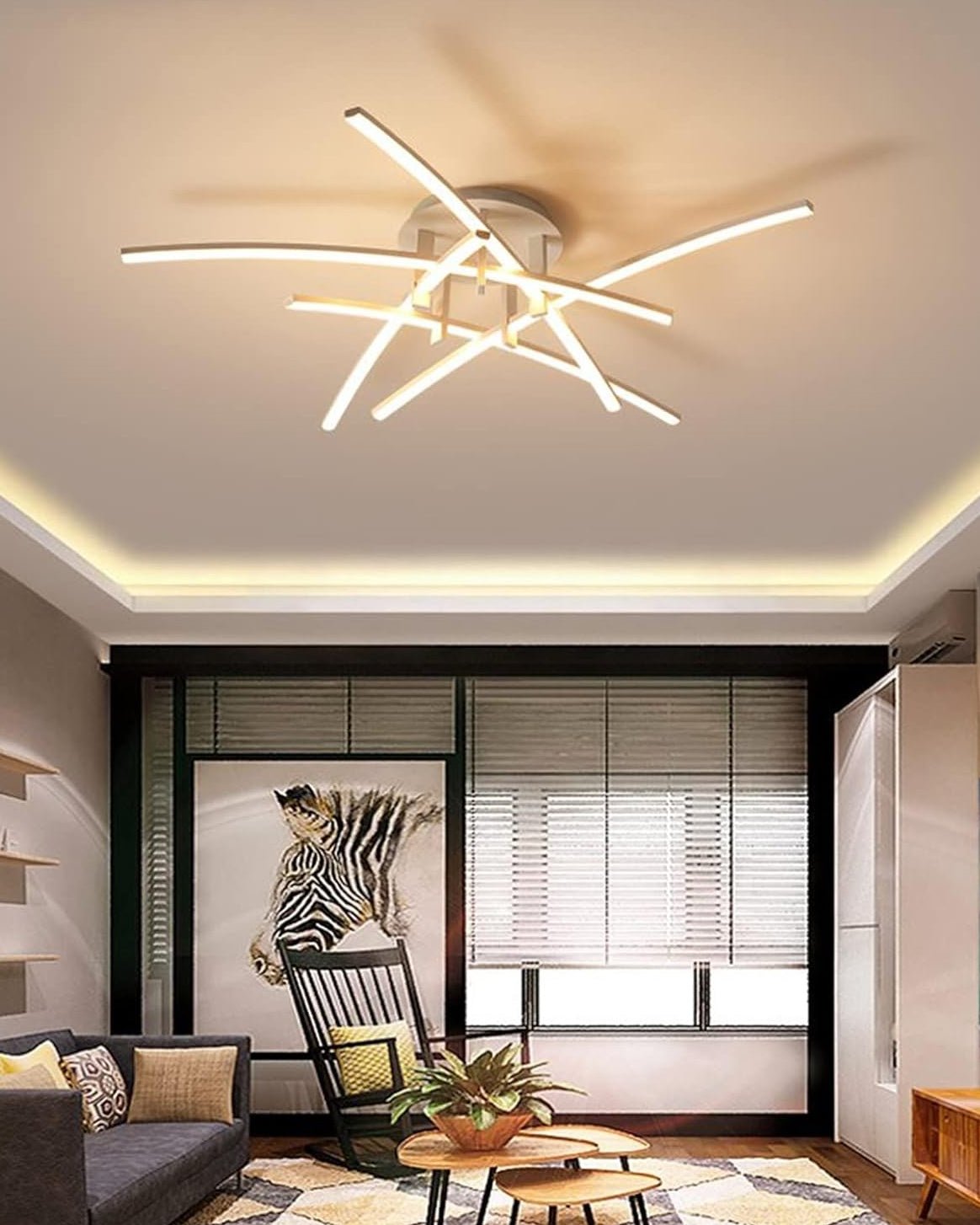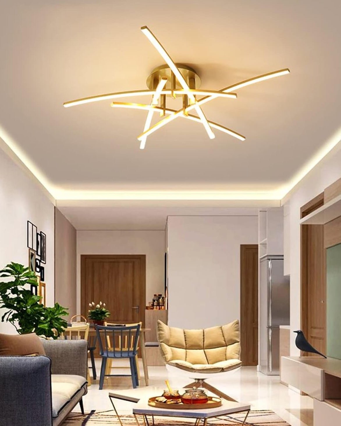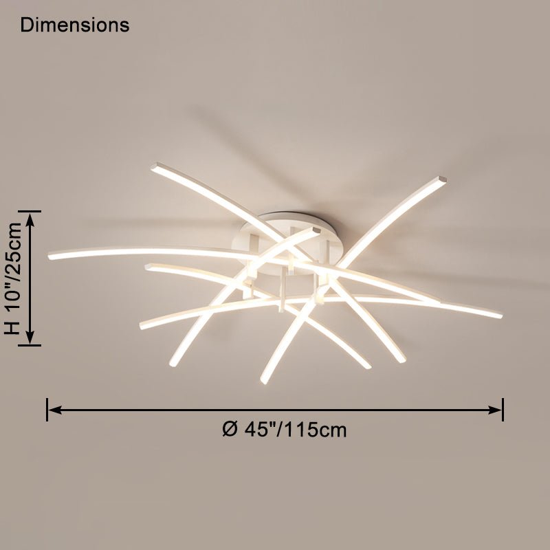 Elevate your living space with the sleek and modern Lume Multi Arm Ceiling Light. Crafted with metallic accents and an elegant arc design in a stunning gold or White finish, this light is perfect for both living rooms and bedrooms. Create a sophisticated and contemporary look with this must-have addition to your home decor.