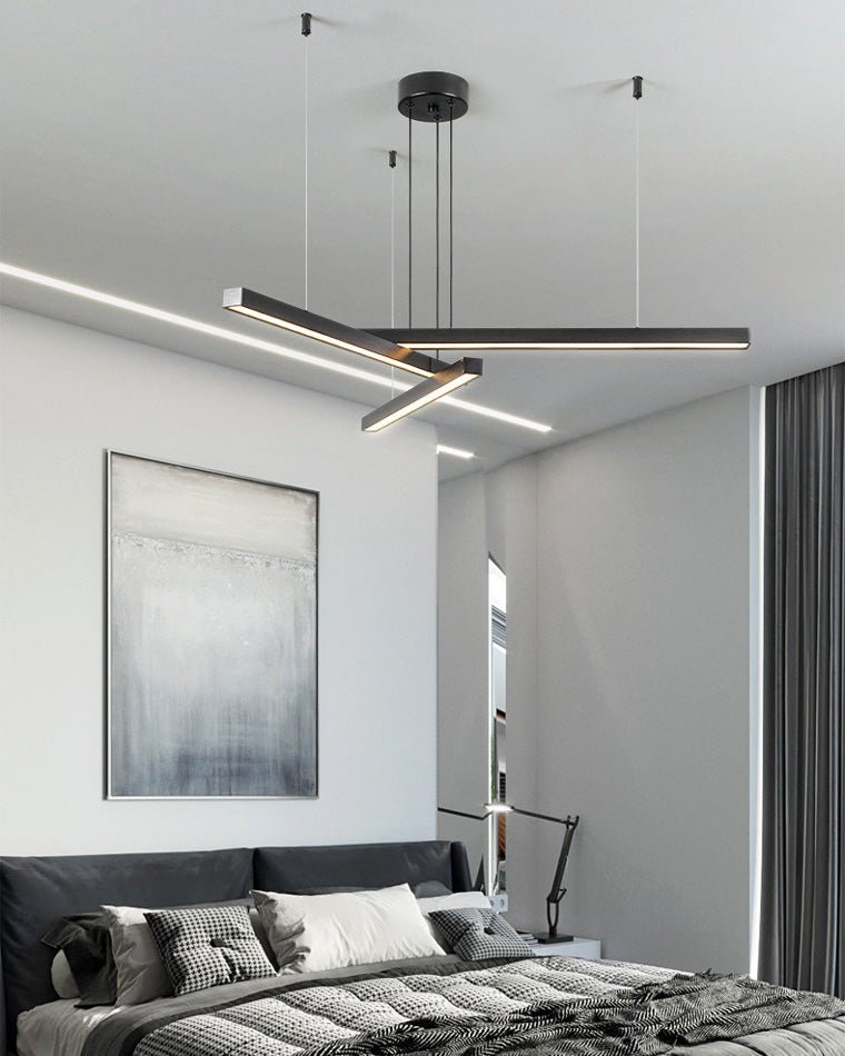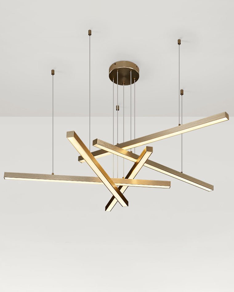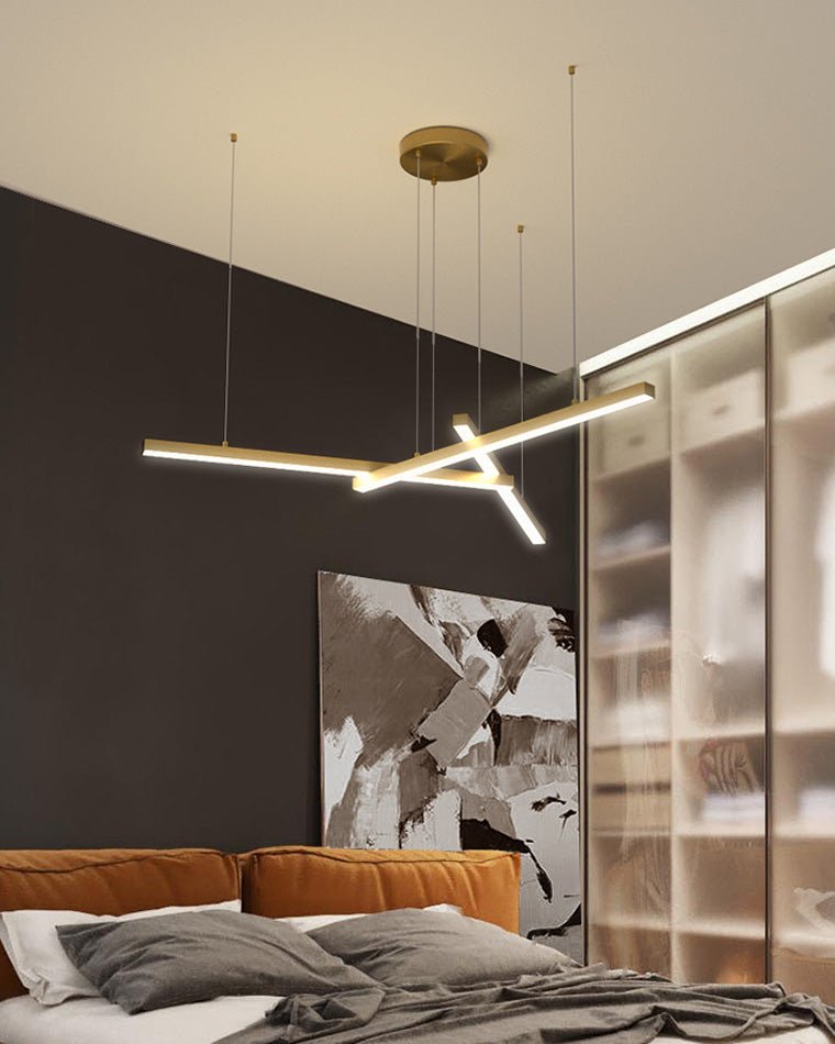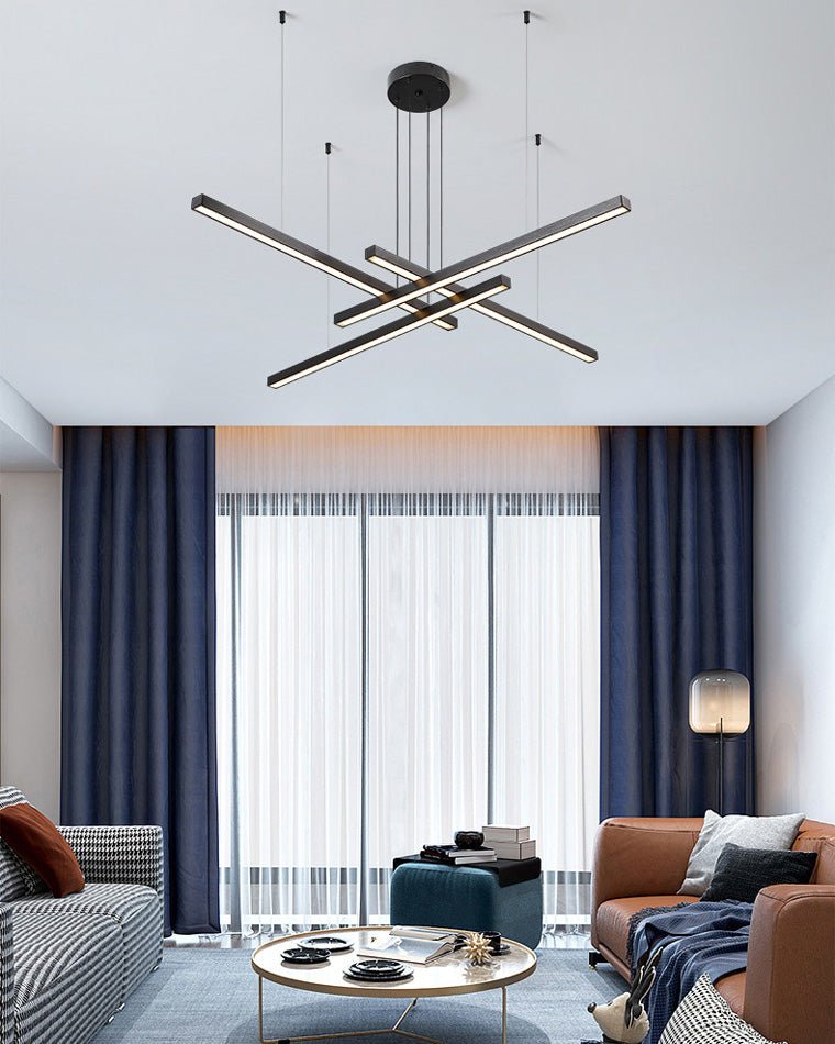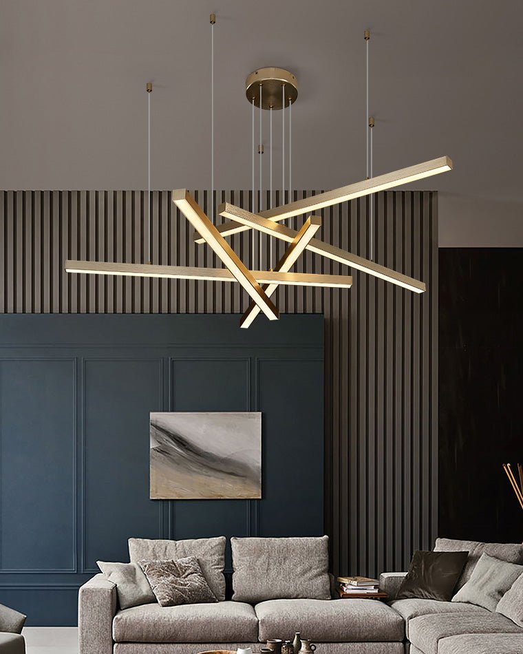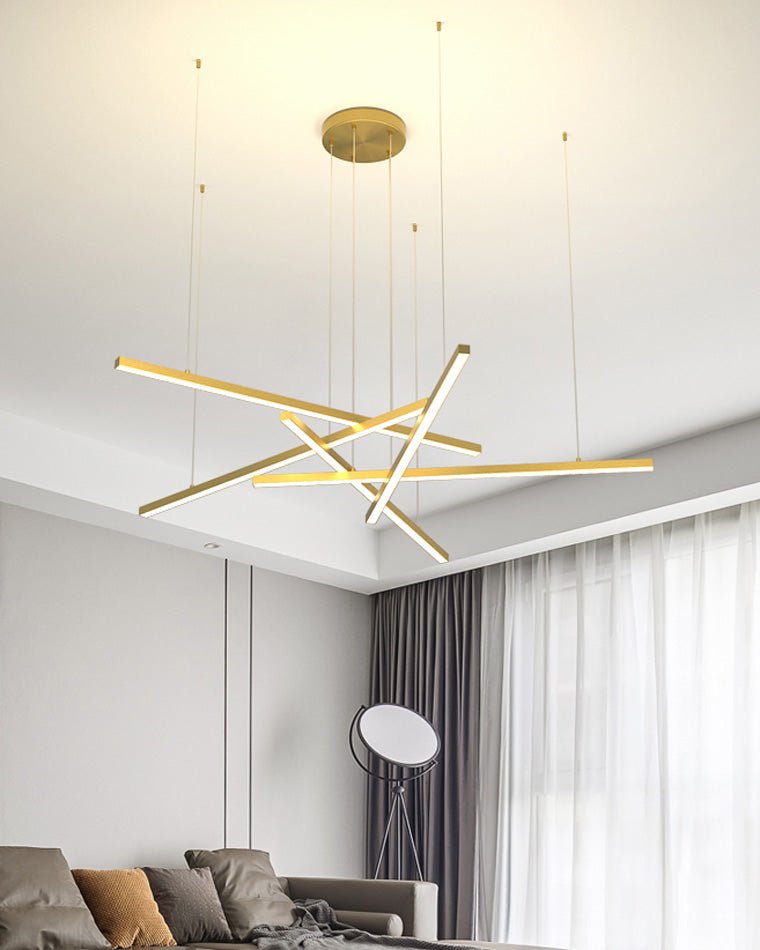 Elevate your living space with the jucci Multi Light Sticks LED Chandelier! This minimalist chandelier features multiple linear LED lights that can be arranged in a pattern of your choice. Available in black or gold, it adds a touch of modern elegance to any living or dining room. Illuminate your home in style!