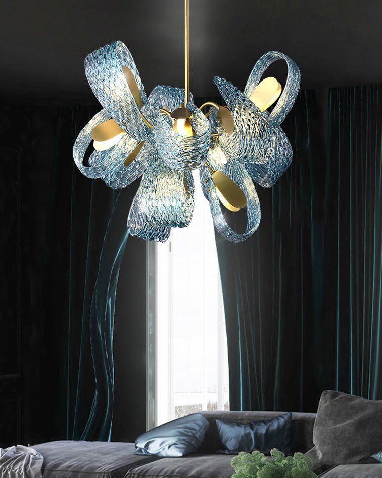 Transform any room into a work of art with the jucci Peacock Art Glass Chandelier-WM2213. Adorned with vivid blue peacock feathers, this chandelier adds an artistic touch and makes a bold statement in any dining room, bedroom, or living room. Elevate your space with this stunning Art Deco piece.