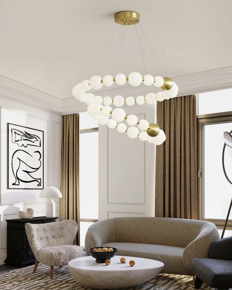 Elevate your style with the jucci Pear Necklace Circular Chandelier. This contemporary piece features a sleek circular frame crafted with brass and accented with luxurious gold detailing. Made with high-quality acrylic, it’s perfect for both living rooms and bedrooms. Transform any space into a stylish oasis with this stunning chandelier!
