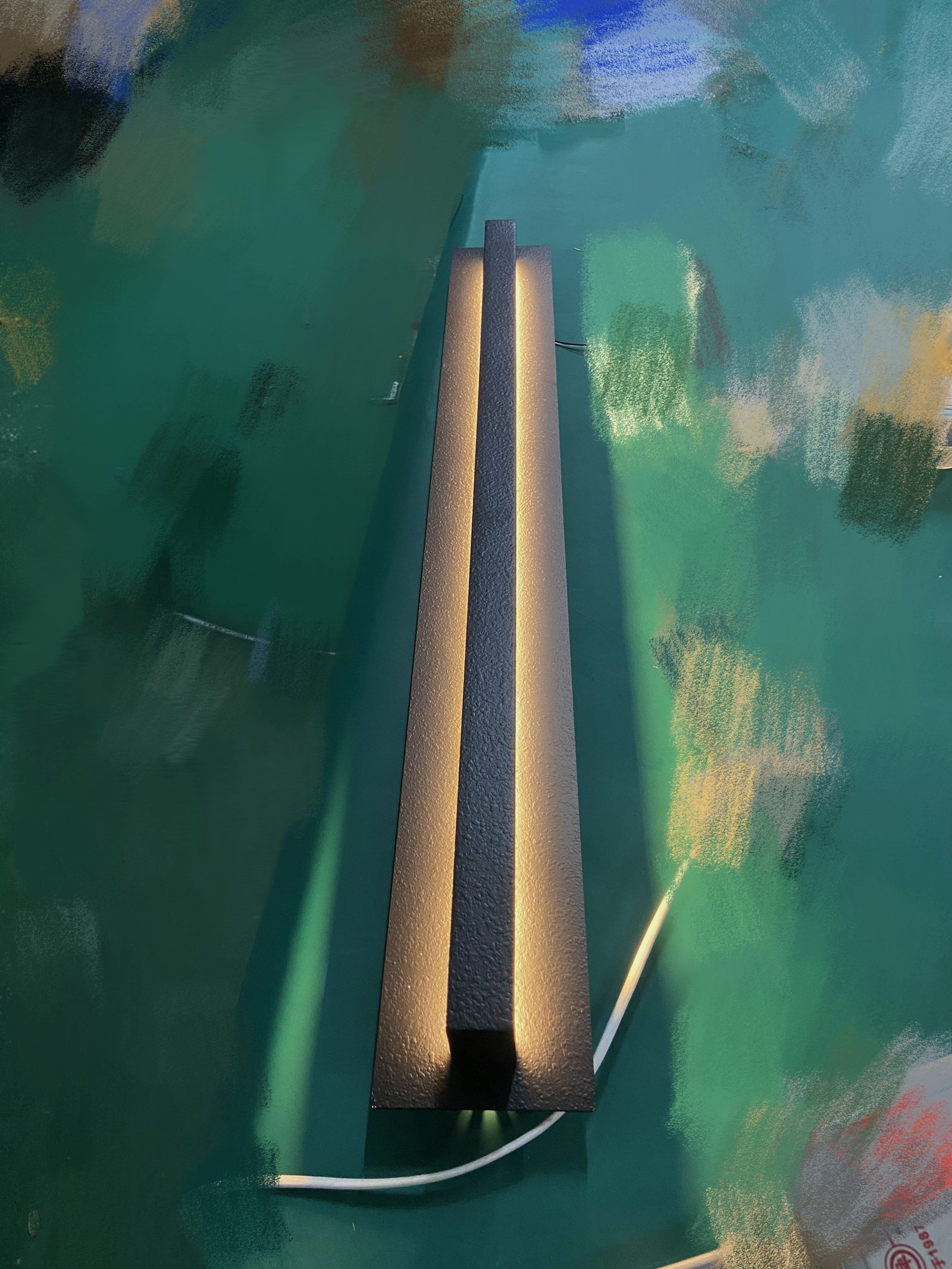 Classic craftsmanship meets modern innovation in this lighting collection from industrial blacksmith Jon Sarriugarte. Forged from iron, the fixture’s clean contours conceal LED light strips, providing a halo of ambient illumination.