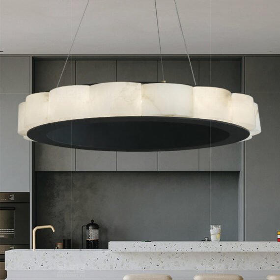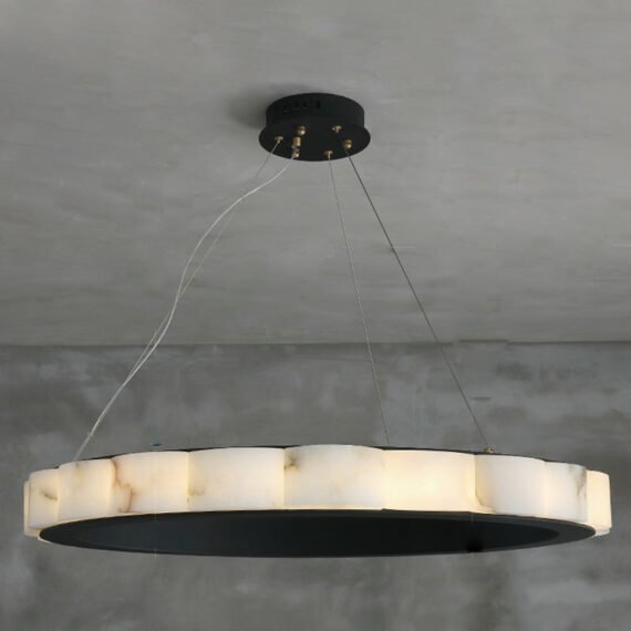 $1,335.69 – $1,733.40Price range: $1,335.69 through $1,733.40Halo Ring Alabaster Chandelier With Canopy Over Dining Table