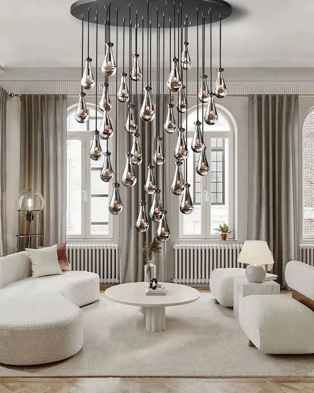 Elevate the elegance of your home with jucci Cascading Glass Chandelier. Perfect for showcasing in your staircase or living room, this chandelier features a stunning combination of silver, brass or black. Transform any space into a luxurious setting with just one piece.
