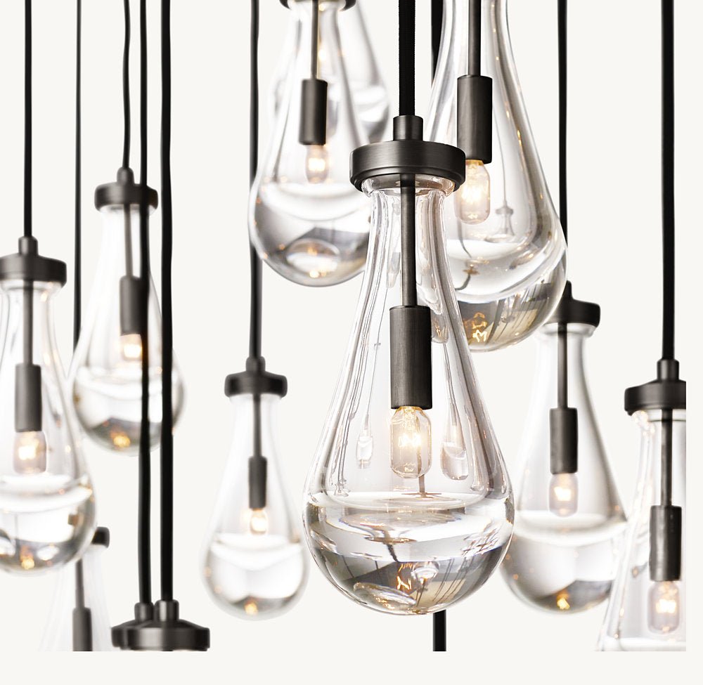 - Each weighty, solid glass raindrop is individually blown by a skilled artisan