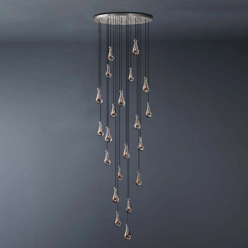 Our Raindrop Round Chandelier is a captivating piece with raindrops that look like raindrops. Handcrafted from blown glass and a metal frame, this fixture is lit to refract a rich light effect, creating the illusion of underwater lighting.