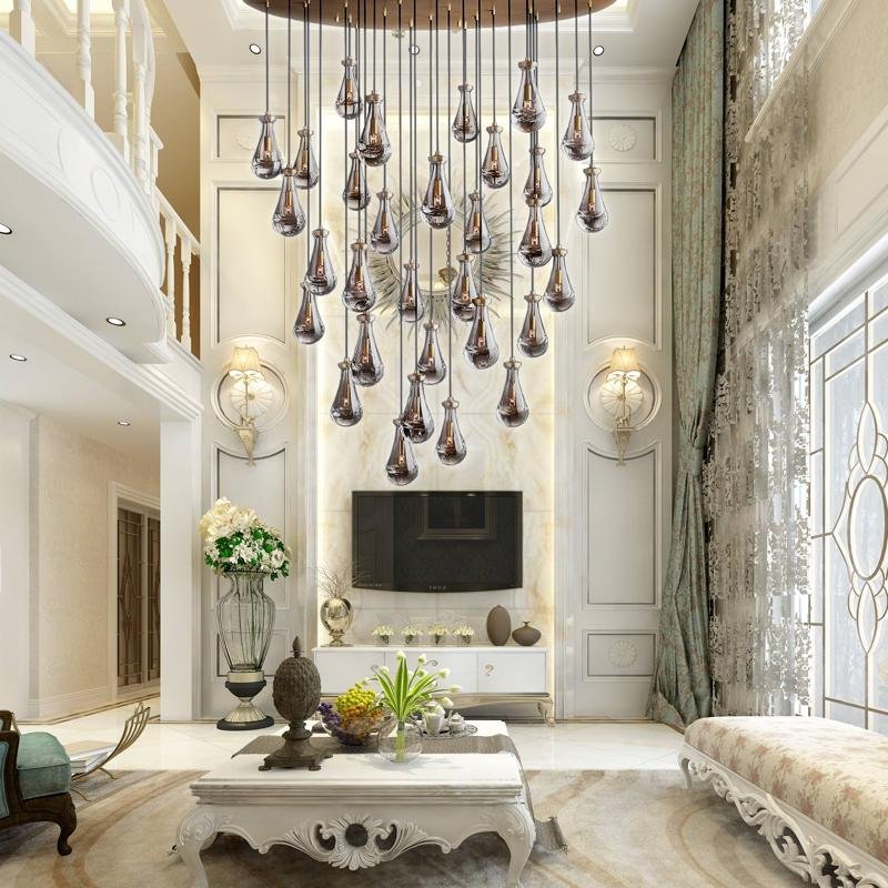 Our Raindrop Round Chandelier is a captivating piece with raindrops that look like raindrops. Handcrafted from blown glass and a metal frame, this fixture is lit to refract a rich light effect, creating the illusion of underwater lighting.