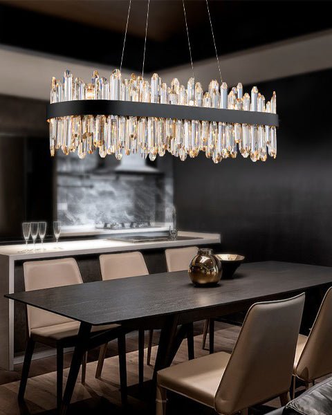 Elevate your space with the elegant jucci Rectangular Crystal Chandelier! Perfect for dining rooms or kitchens, this chandelier adds a touch of glamour with its crystal accents. Available in black or gold, it’s sure to make a statement and bring a sense of luxury to your home.