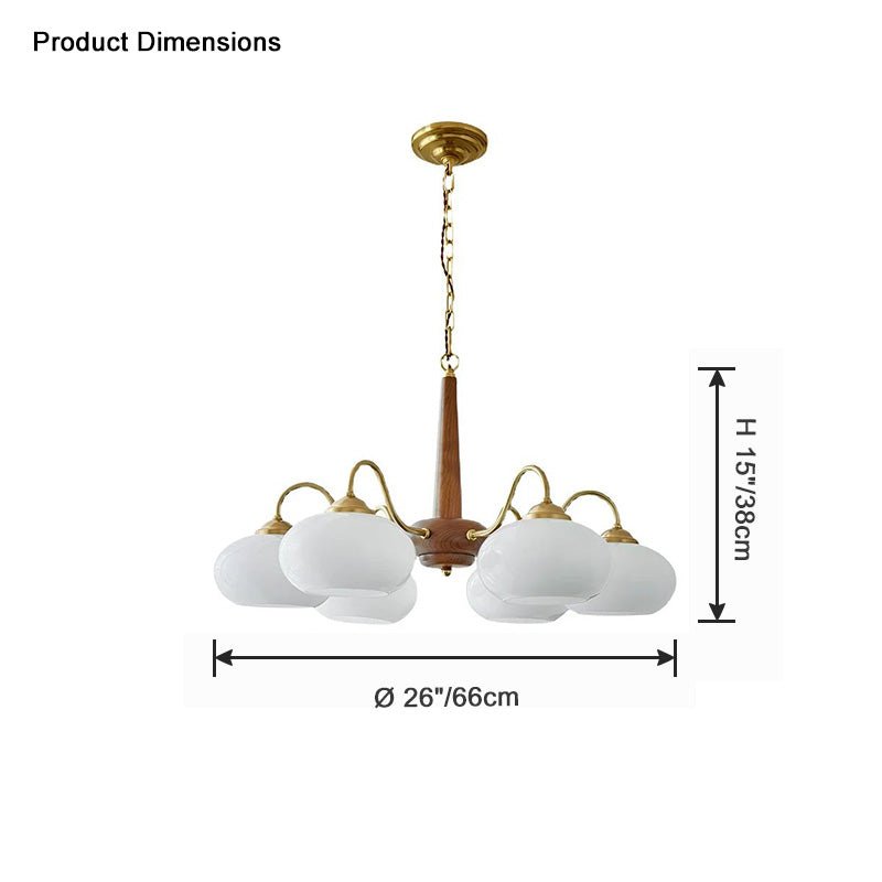 Evoke nostalgia and charm with the jucci Retro Milk Glass Chandelier-WM2303. Made with walnut and wood, this vintage-inspired piece adds warmth to your living room or bedroom. Elevate your space and create a cozy atmosphere with this unique chandelier.