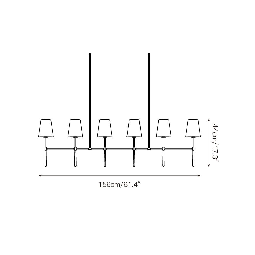 6 heads L 156cm x W 14cm x H 44cm / L 61.4″ x W 5.5″ x H 17.3″. (11.8″+15.7″ suspension rod)