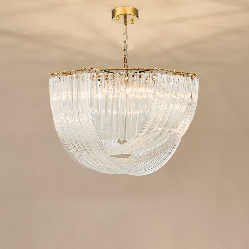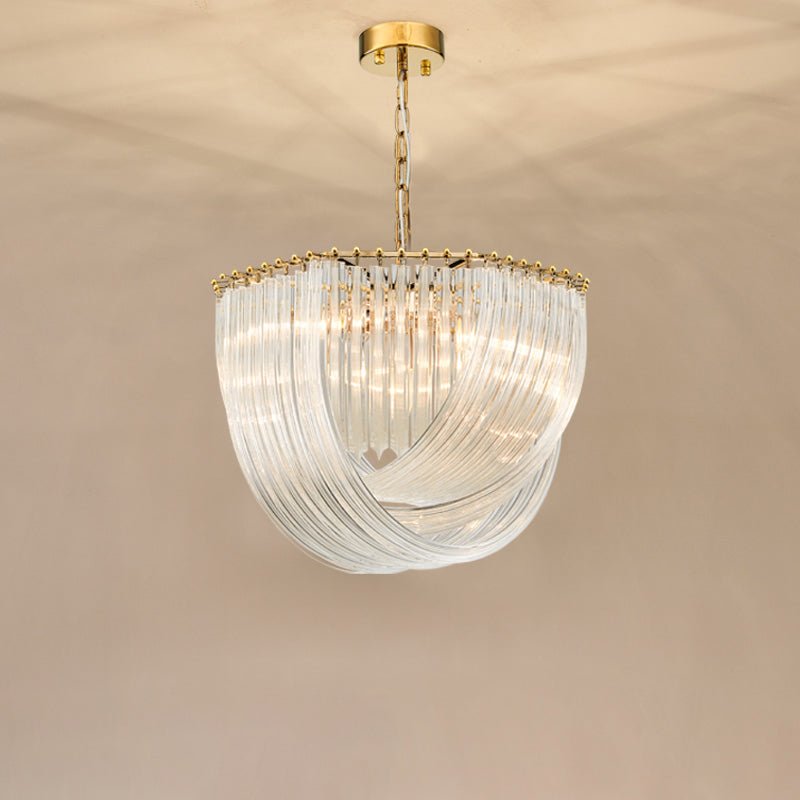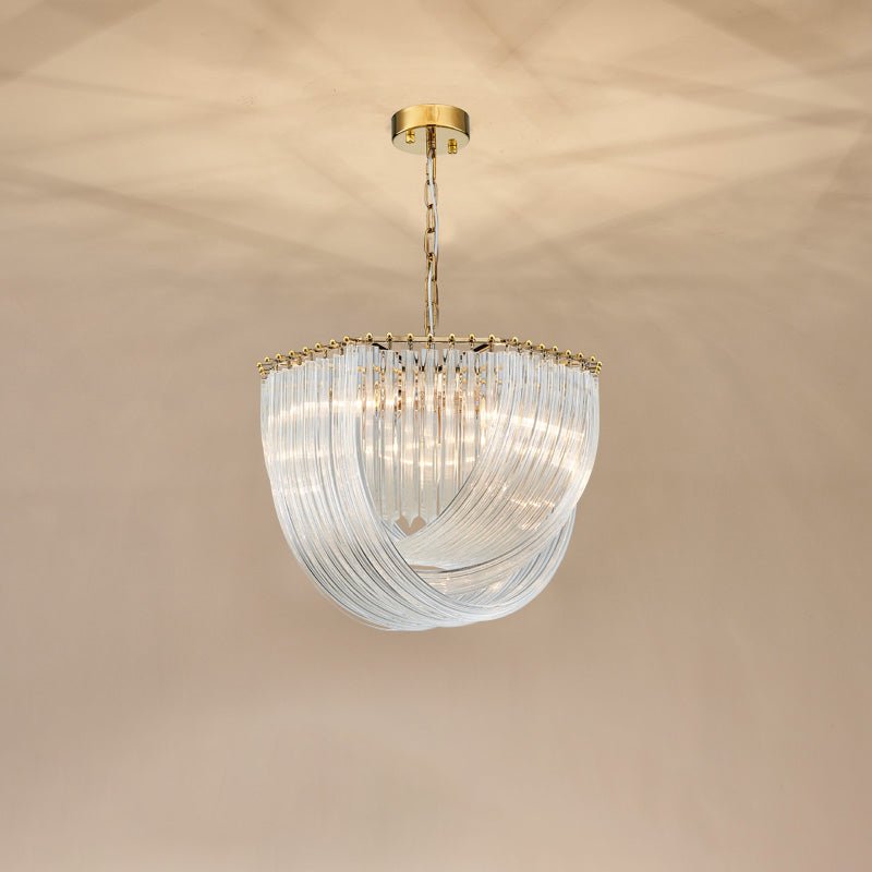 Enhance any room’s ambiance with the stunning jucci Ribbon Glass Chandelier-WM2590! This elegant chandelier, designed with gold accents and an Art Deco style, adds a touch of sophistication to any dining room or bedroom. Its glass construction reflects light beautifully, creating a warm and inviting atmosphere. Elevate your home decor today!