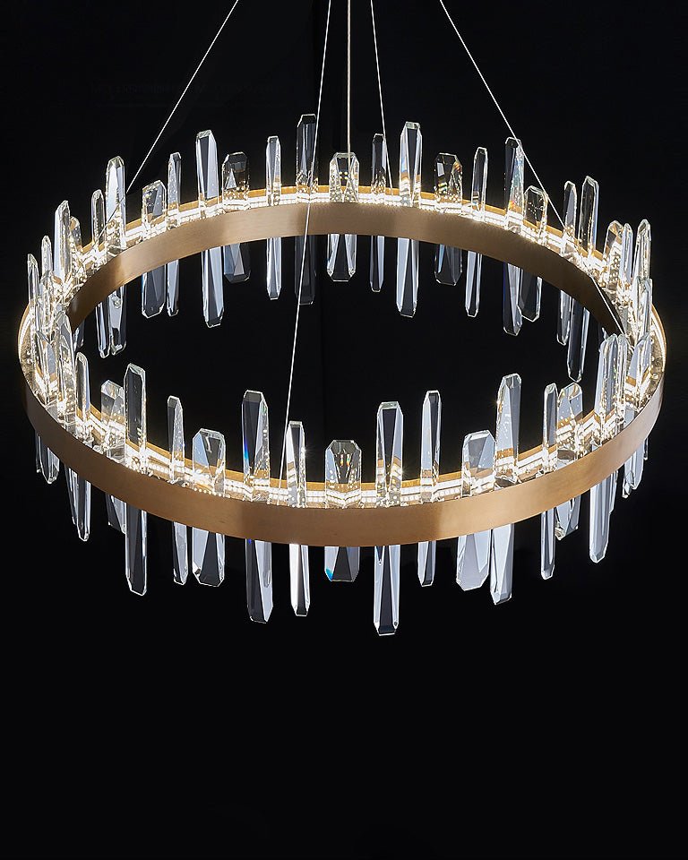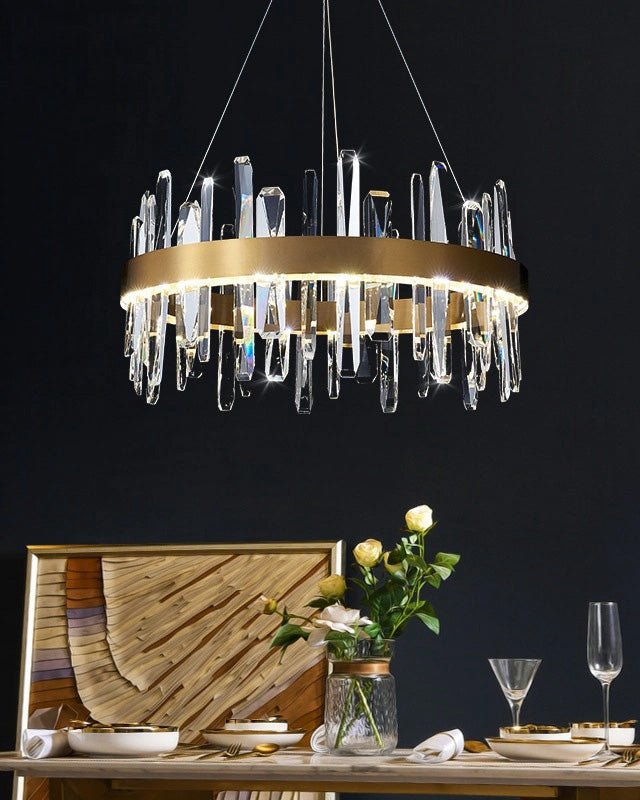 Elevate your space with the luxurious and contemporary jucci Round Crystal Chandelier. Featuring sparkling crystals, this chandelier will bring a touch of glamour to any room in your home. Perfect for the living room, bedroom or dining room, its sleek round design and elegant gold finish will add an eye-catching centerpiece to your decor. Create a truly stunning ambiance and make a statement with this stunning chandelier.