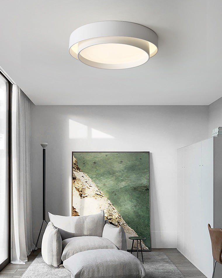 Elevate your space with our Lume Round Flush Mount Ceiling Light! Its unique design features an inner drum rounded by an asymmetrical lower drum, creating a modern and stylish look. Available in black or white, this light is perfect for adding ambiance to your bedroom, hallway, or laundry room. Upgrade your home with this elegant and versatile lighting solution.