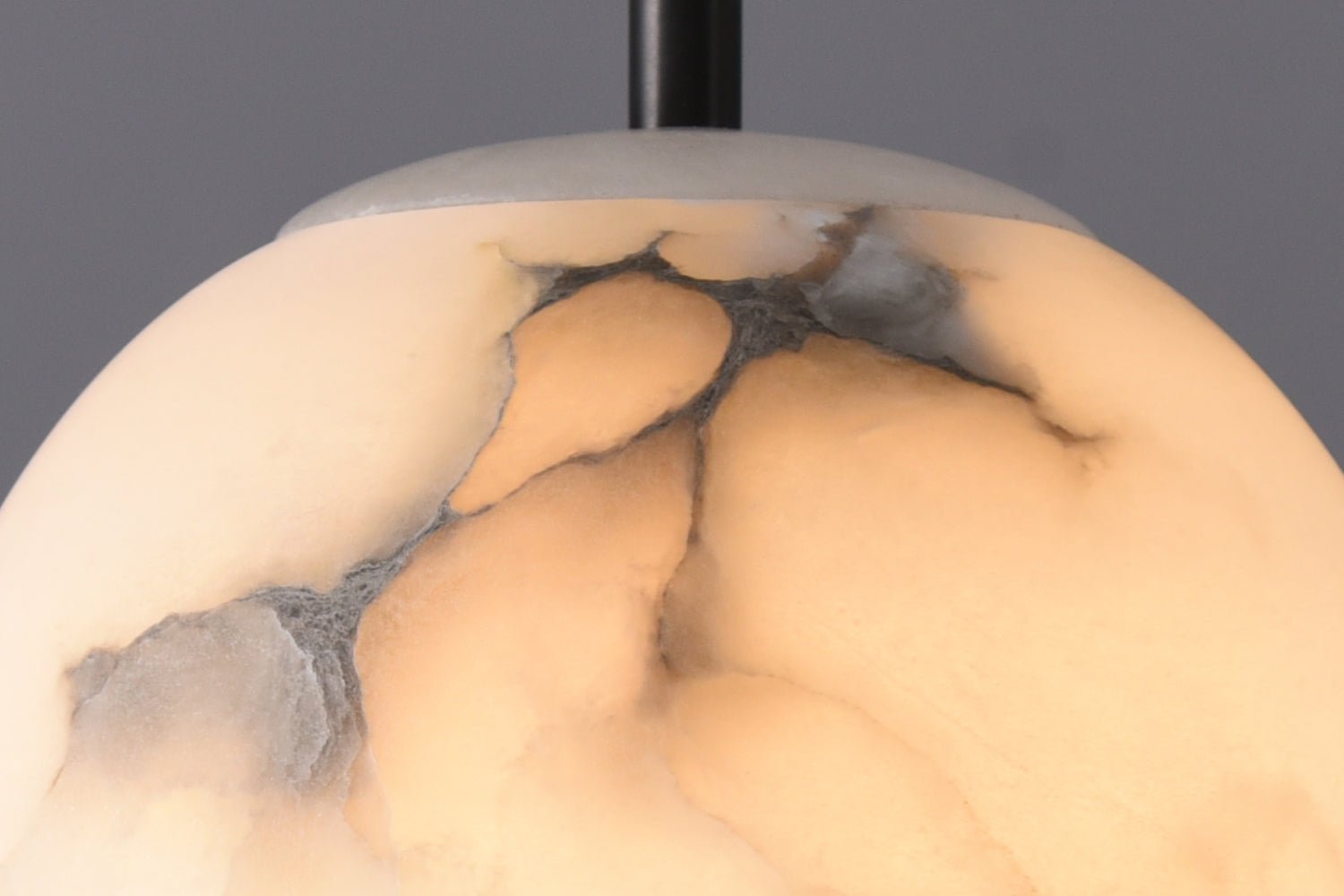 This alabaster chandelier is made of natural alabaster. Natural alabaster is polished and hollowed out to become a lampshade. Due to the translucent characteristics of alabaster, light can bring unique light through the gypsum.