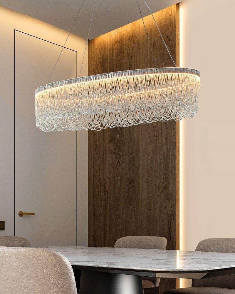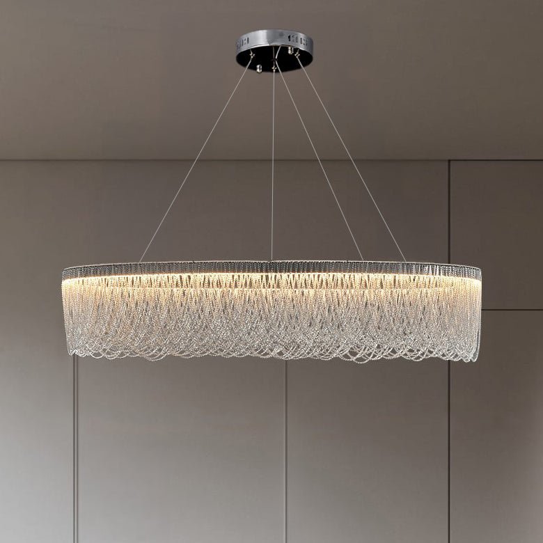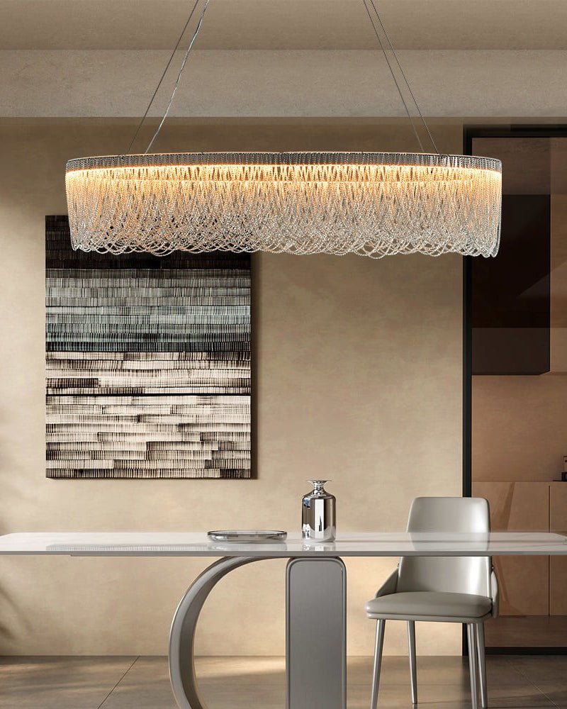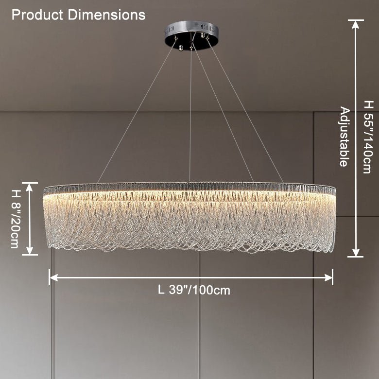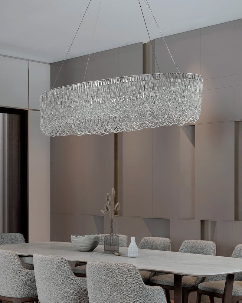 Elevate your dining or living space with the timeless elegance of the jucci Silver Fringe Round Chandelier. Its striking silver fringe and art deco design make a statement that will elevate any room. Perfect for adding a touch of glamour and sophistication to your decor.