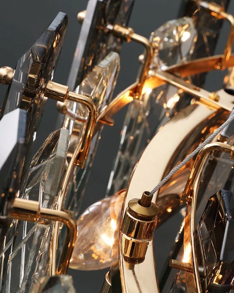 Experience the luxurious charm of the jucci Smoked Crystal Round Chandelier. Featuring a stunning combination of gold, smoked and clear crystals, this contemporary piece will elevate any dining room, living room, or bedroom. Make a statement with this elegant and sophisticated chandelier.