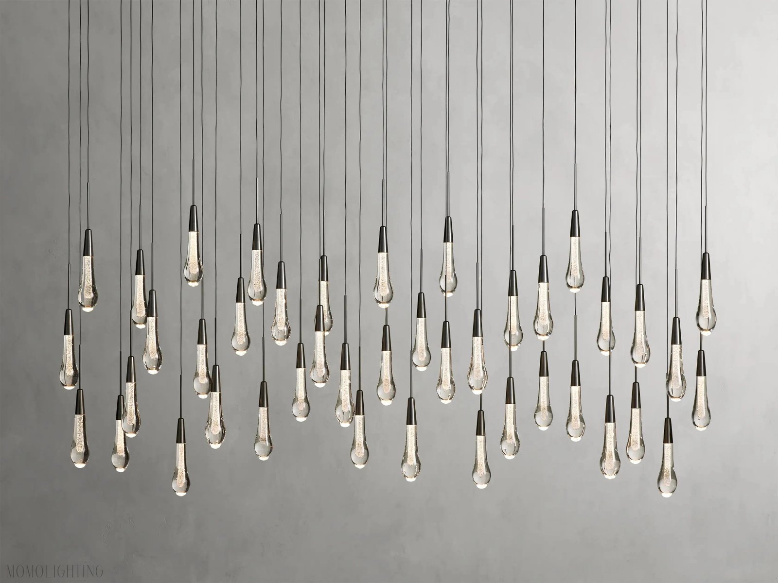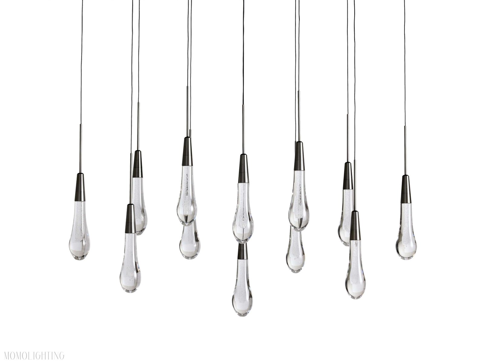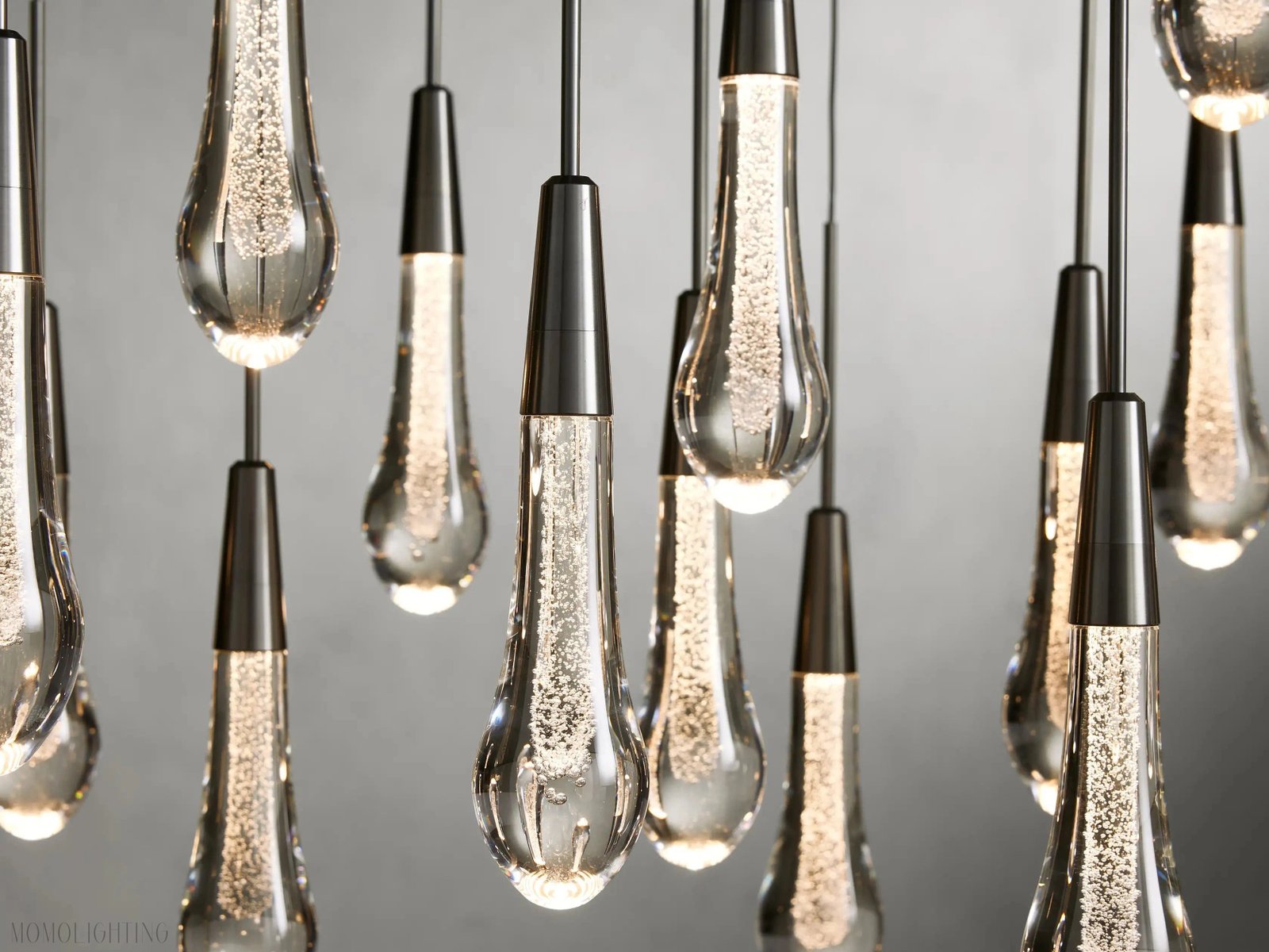Featuring adjustable black PVC cords cascading into integrated LED lights handcrafted from seeded glass, our Soltaire Lighting Collection mimics the look of a fallen raindrop.