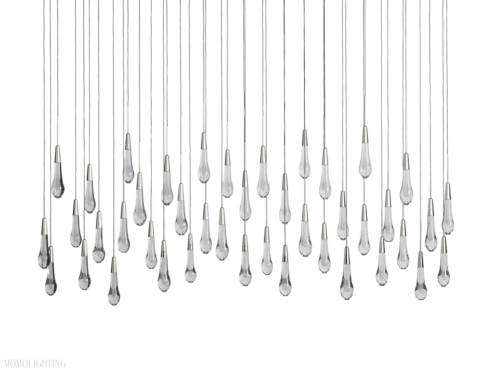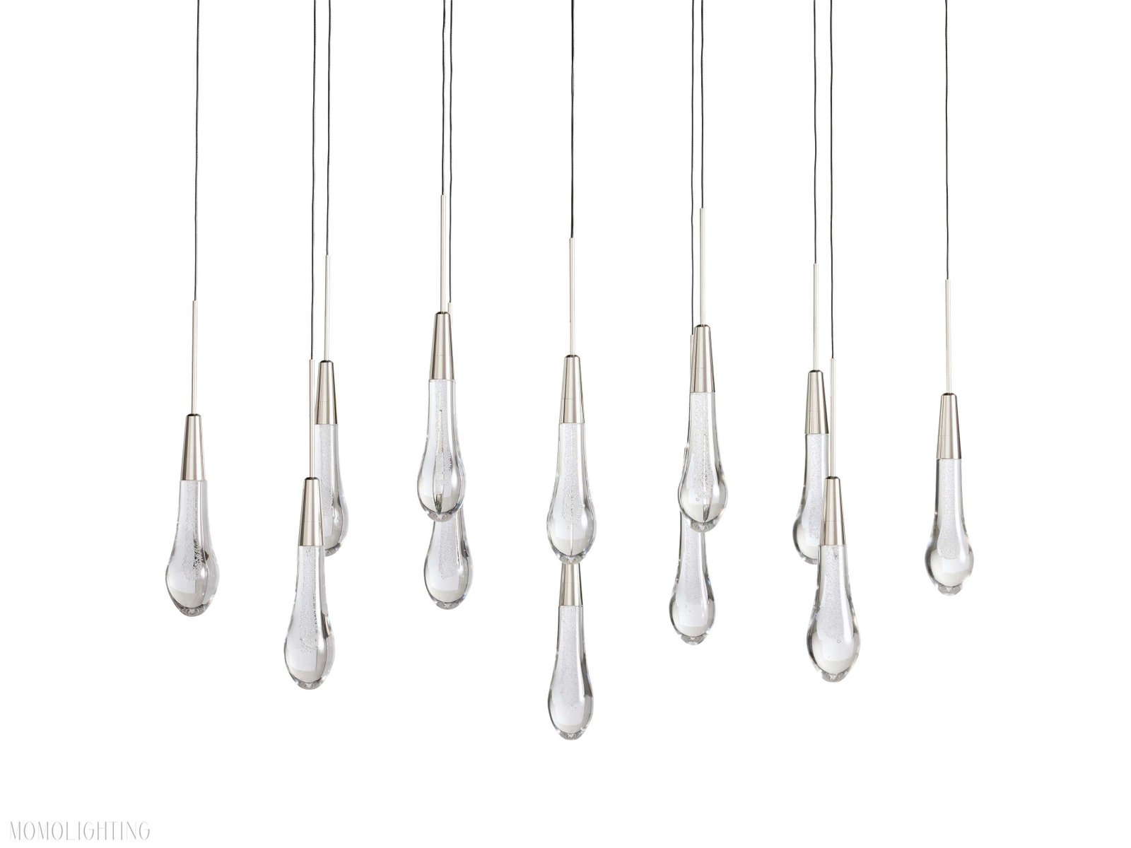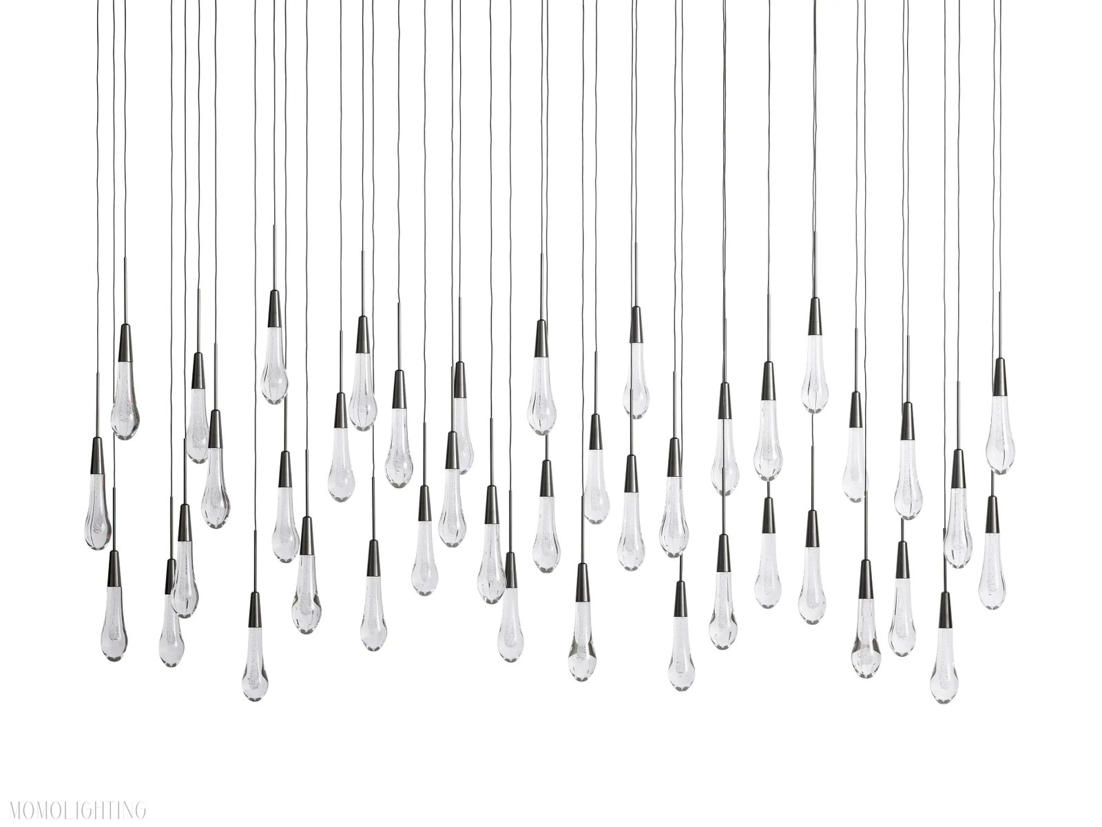 Featuring adjustable black PVC cords cascading into integrated LED lights handcrafted from seeded glass, our Soltaire Lighting Collection mimics the look of a fallen raindrop.