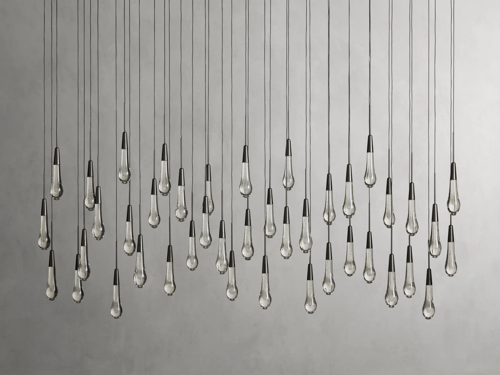 Featuring adjustable black PVC cords cascading into integrated LED lights handcrafted from seeded glass, our Soltaire Lighting Collection mimics the look of a fallen raindrop.