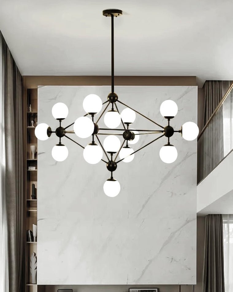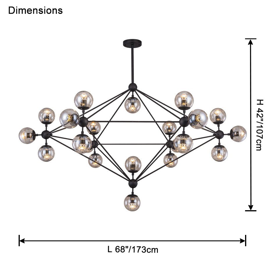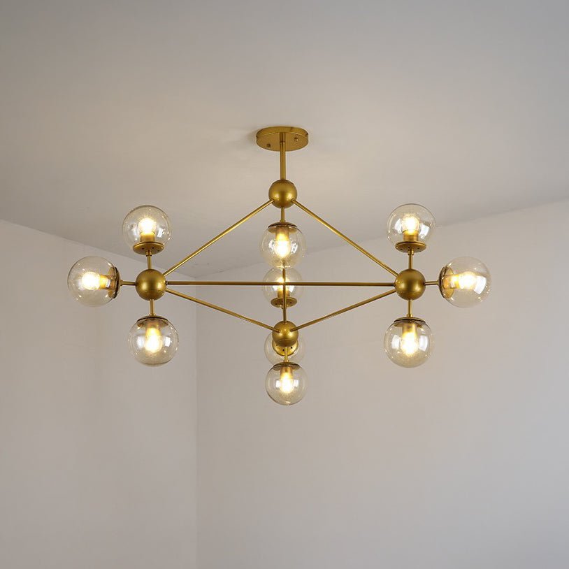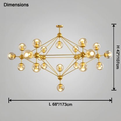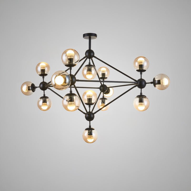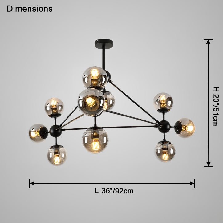 Elevate any space with the modern grandeur of the jucci Sputnik Sphere Chandelier. Featuring a striking mix of glass spheres in amber, clear, smoked, and frosted finishes, this chandelier brings a sophisticated touch to any room. The bold gold and black accents add a touch of luxury, making it a stunning focal point.