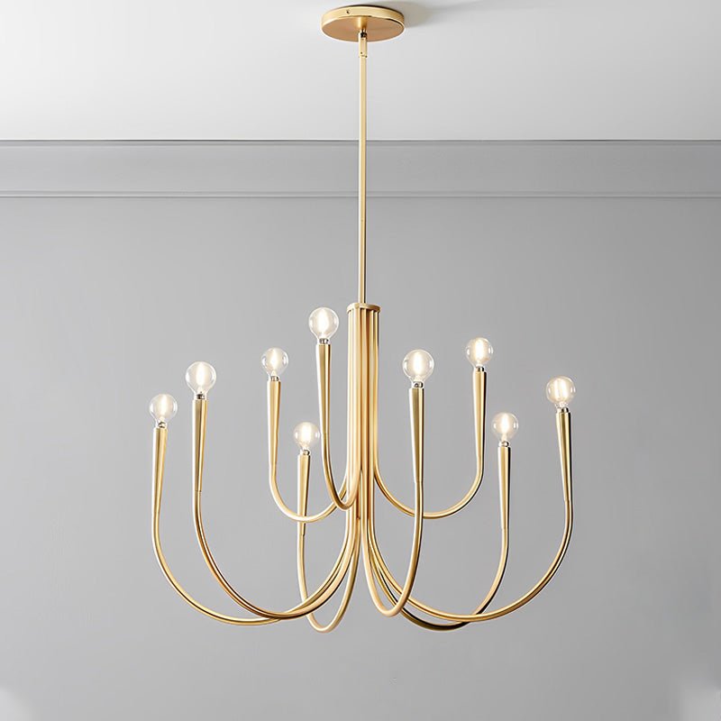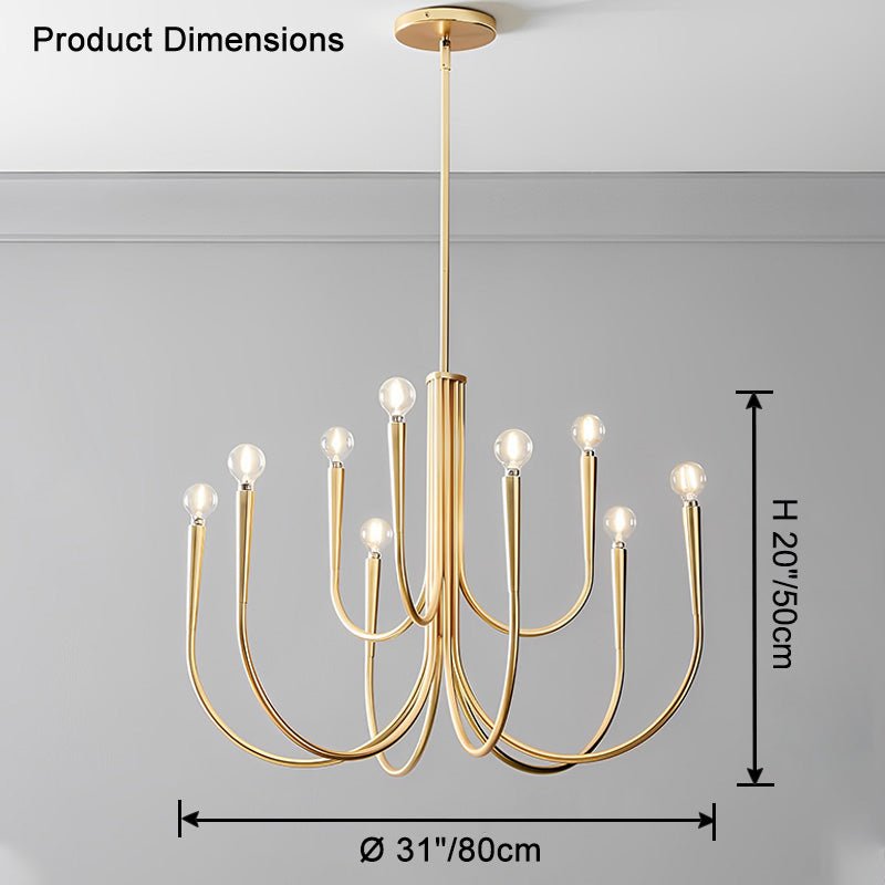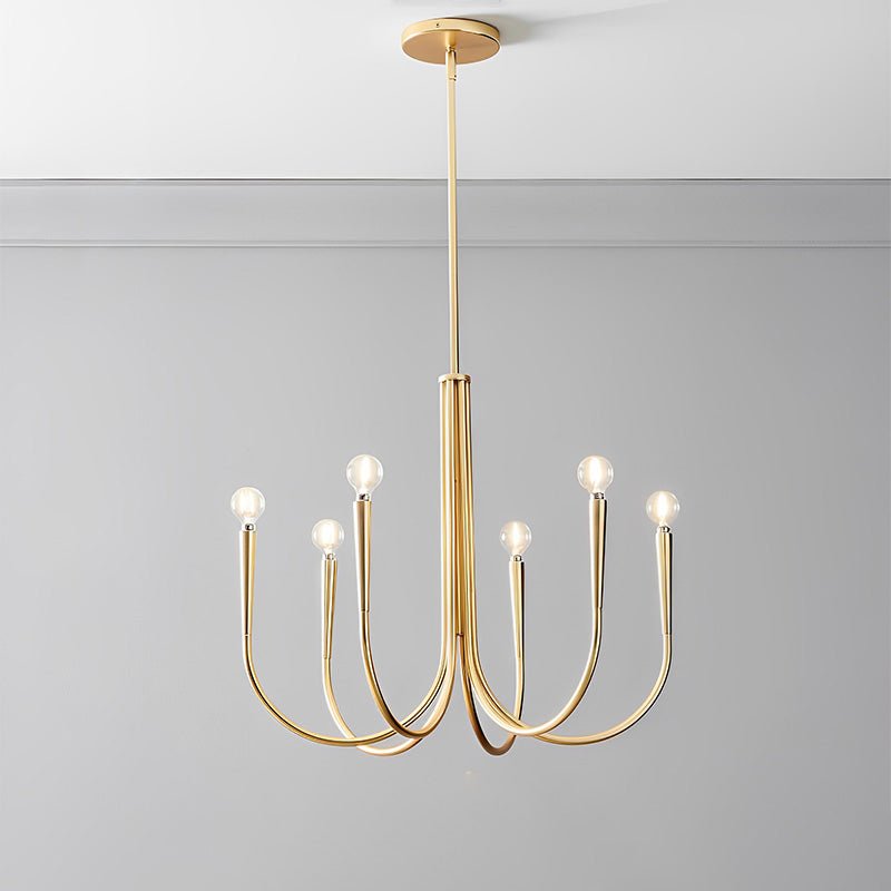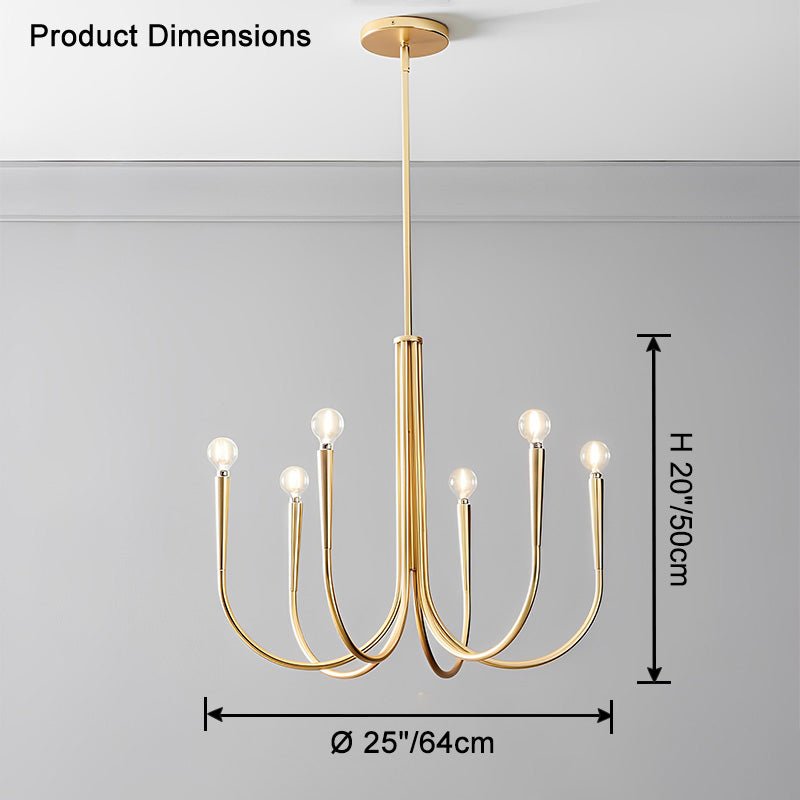 Introduce a touch of modern elegance to your home with the jucci Swoop Arm Candle Chandelier! This sleek metal chandelier adds a contemporary flair to any living room, bedroom, or space. With a stunning blend of gold and black, it effortlessly becomes a focal point and sets a luxurious ambiance.