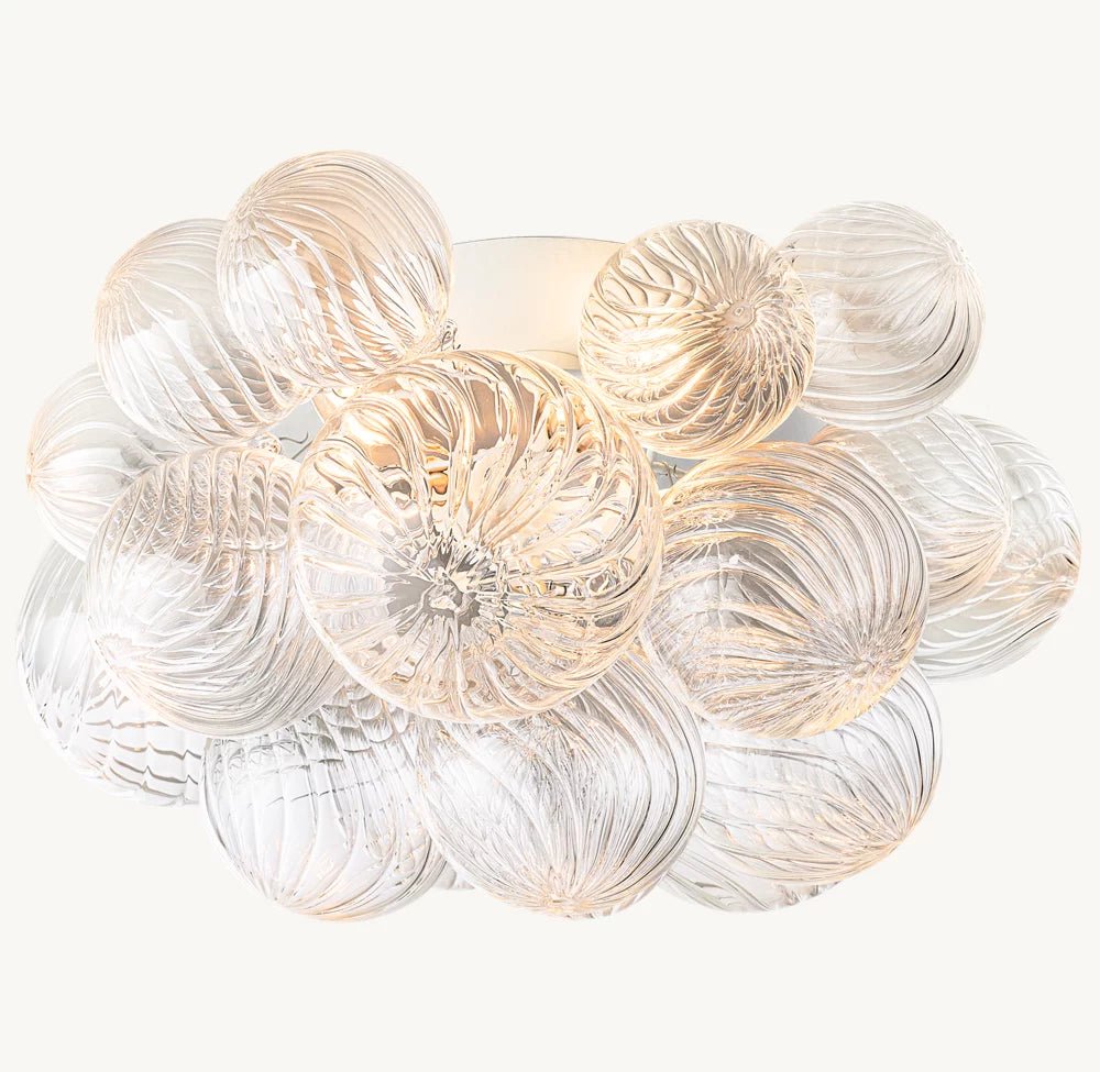 - On a handcrafted steel frame, Talia features 18 mouth-blown rippled glass orbs