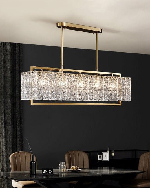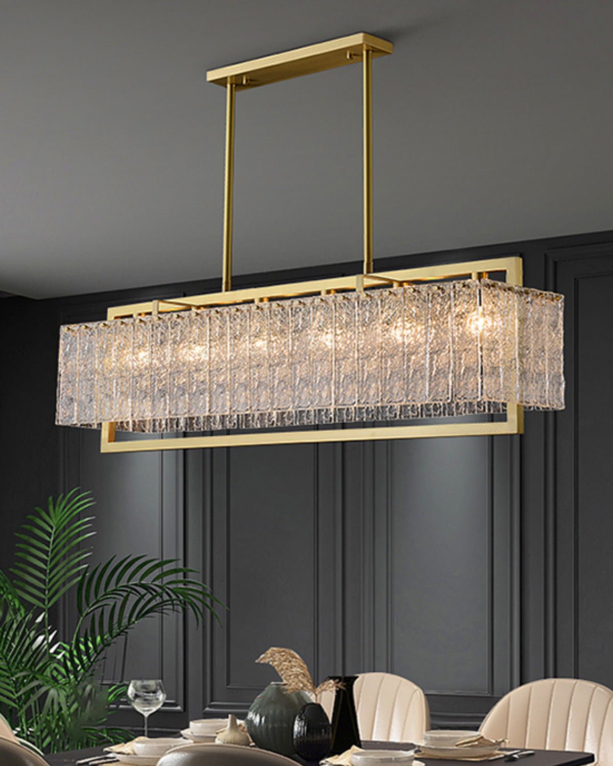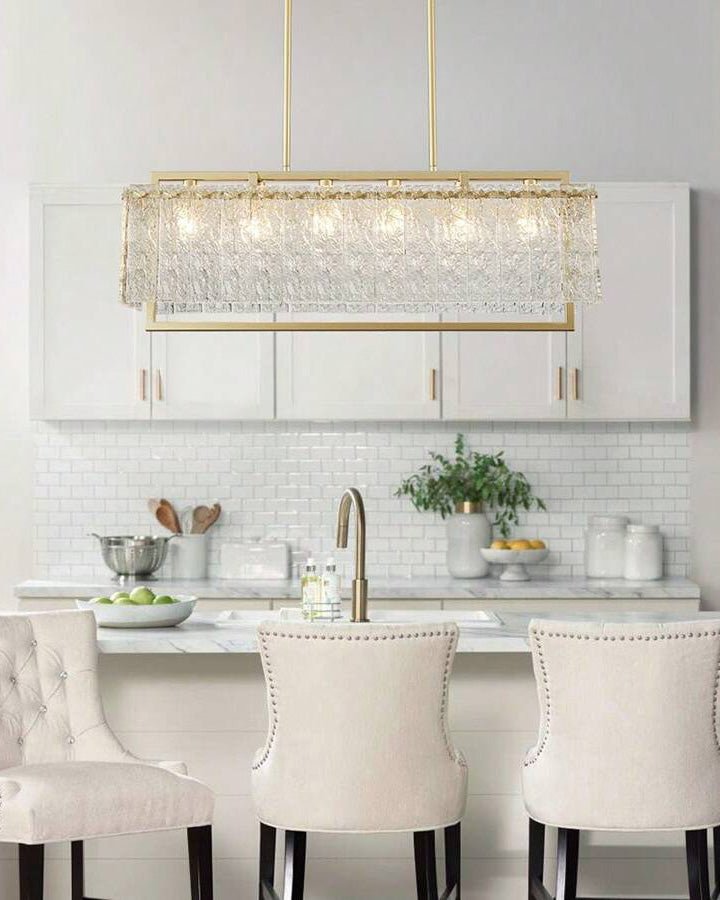 Elevate your home with our jucci Textured Glass Linear Chandelier-WM2620, featuring a modern brass design and gold finish. Perfect for dining rooms and kitchens, this round chandelier adds a touch of sophistication and warmth to any living space. Make a statement with this elegant and stylish lighting fixture!