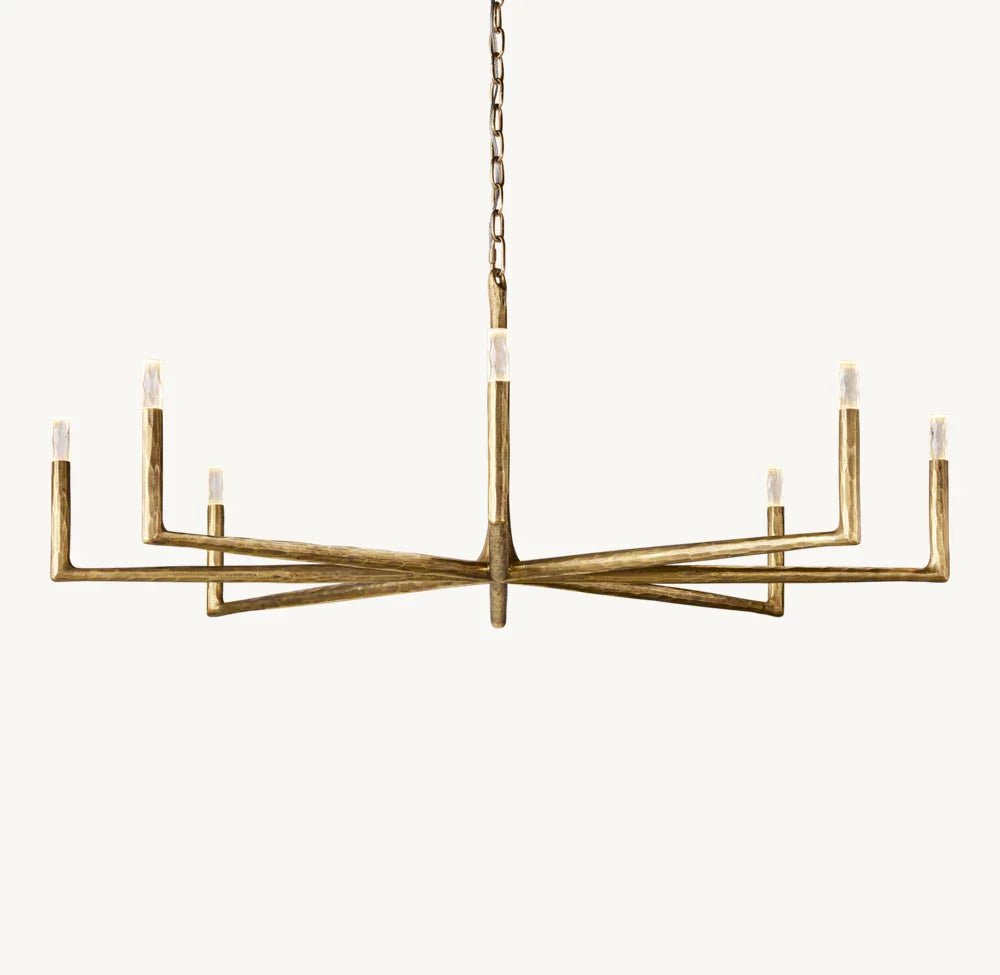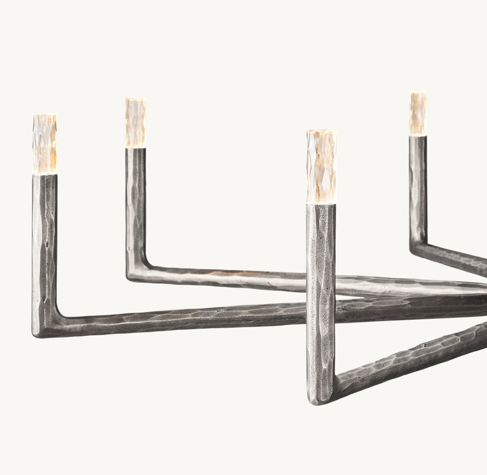 - Faceted, cast glass bulb covers echo the texture of the metal