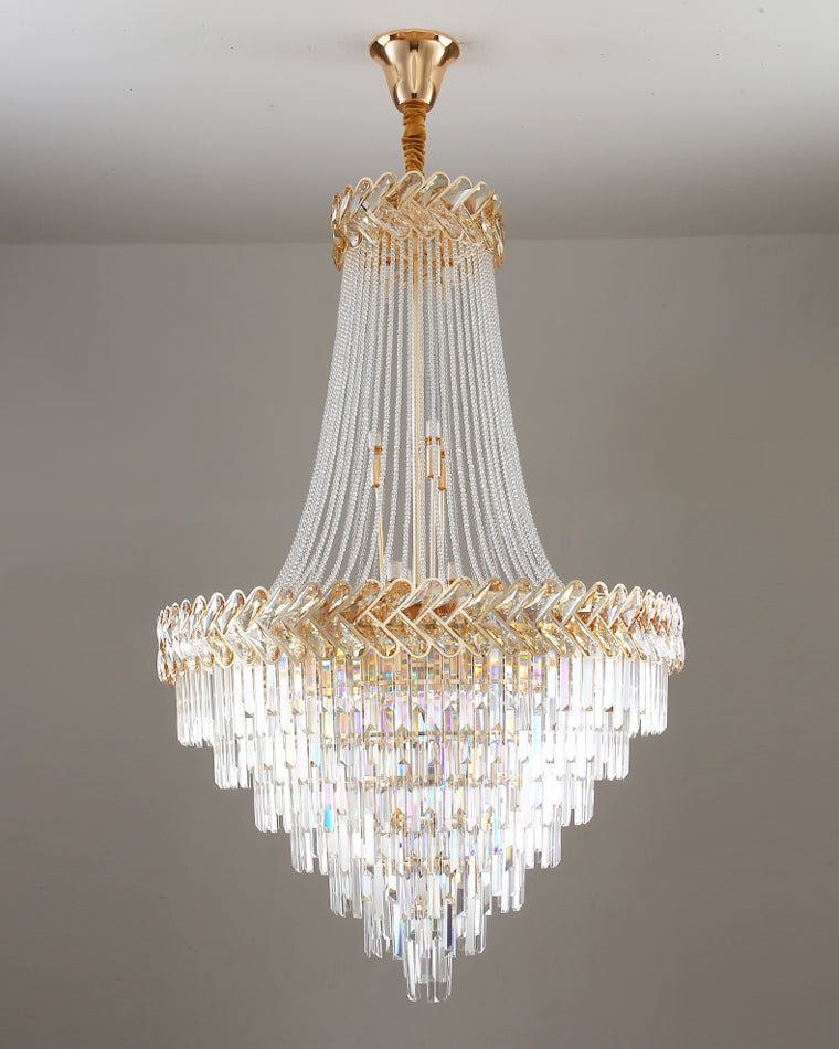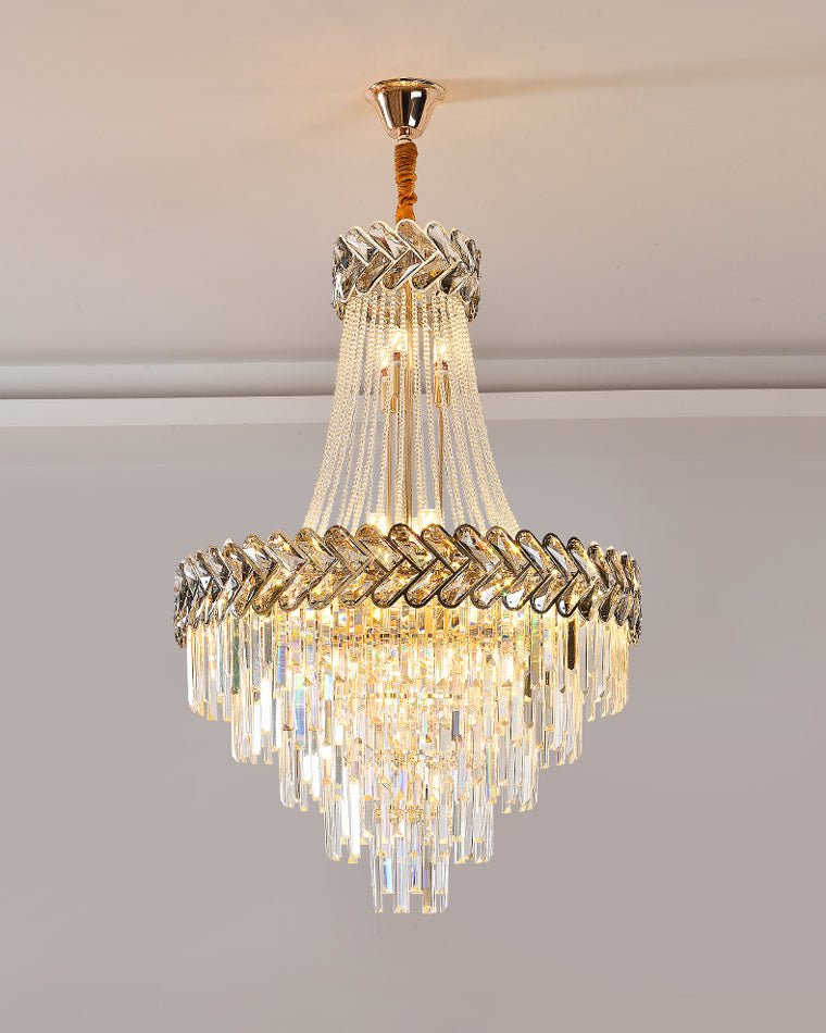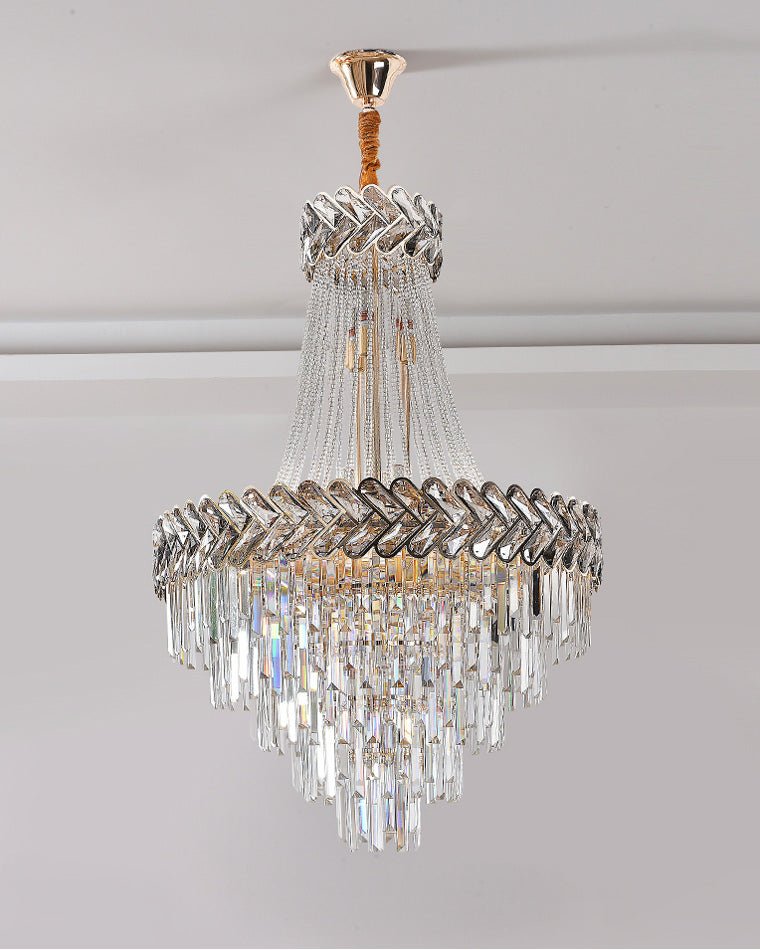 Experience the luxurious elegance of our jucci Tiered Crystal Chandelier. Available in smoked or amber crystal, this contemporary piece is perfect for adding a touch of glamour to any foyer. Elevate your space with the stunning light and sophisticated design.
