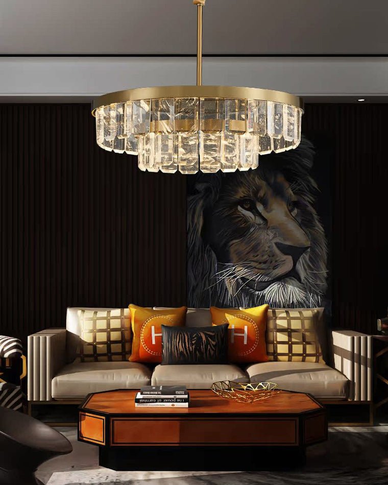 Upgrade your living room with the modern and luxurious jucci Tiered Gold Crystal Chandelier-WM2539. Featuring a stylish tiered design and shimmering crystal accents in a rich gold finish, this chandelier will add a touch of elegance to any space. Transform your living room into a stunning, sophisticated retreat with this must-have lighting fixture.