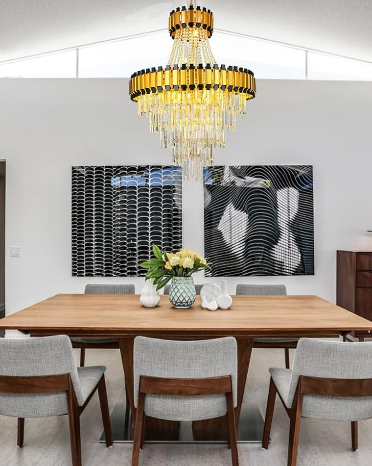 Transform your living space into a modern oasis with our jucci Tiered Gold Crystal Chandelier-WM2745! This contemporary piece features stunning gold accents and a durable metal construction. Perfect for living rooms, dining rooms, and foyers, add a touch of elegance and sophistication to any room.