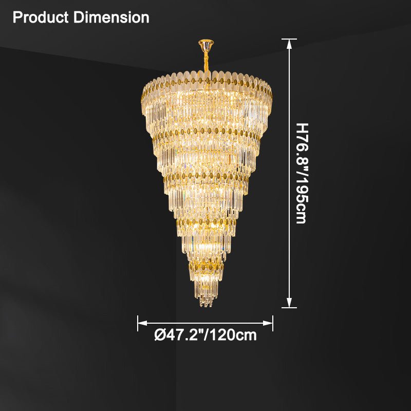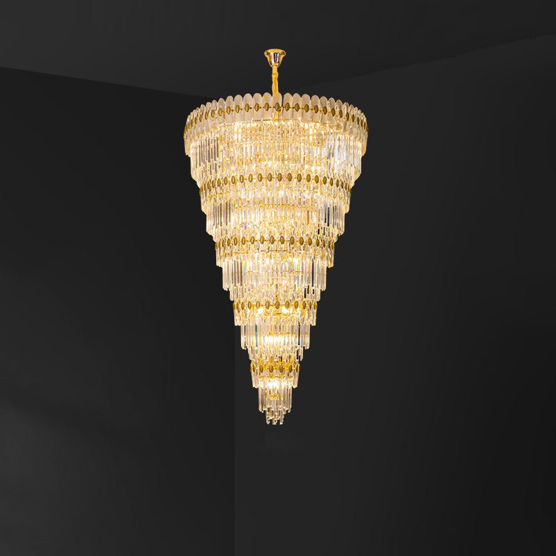 Transform your space into a luxurious haven with our jucci Tiered Tapered Gold Crystal Chandelier! This art deco piece features sparkling crystal prisms that create a statement in any room. Perfect for large foyers, its timeless design exudes grandeur and adds a touch of opulence. Elevate your home with this expensive but worthy investment.