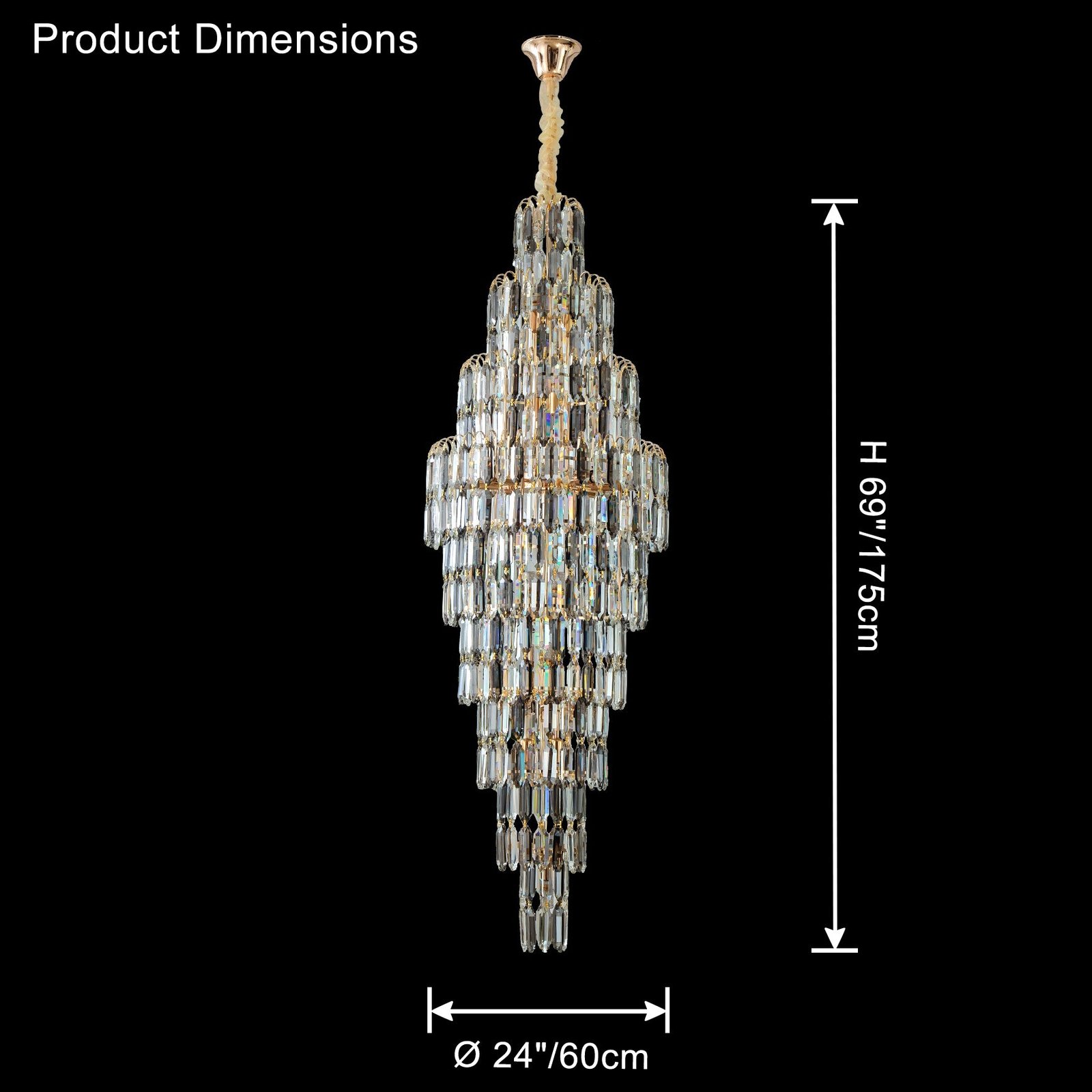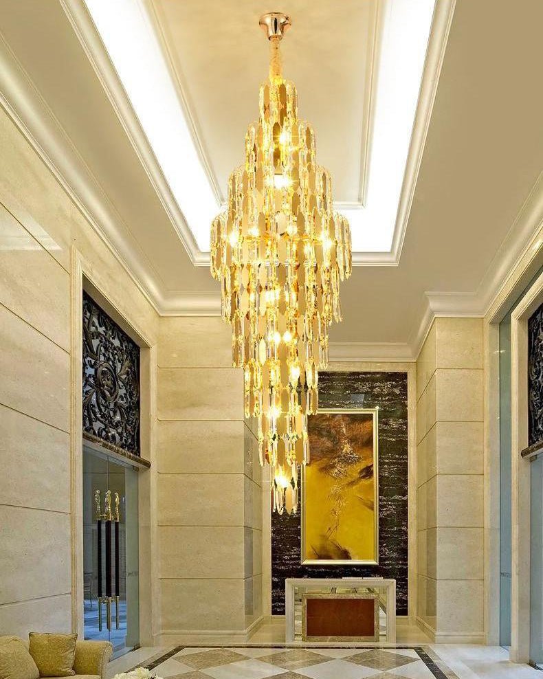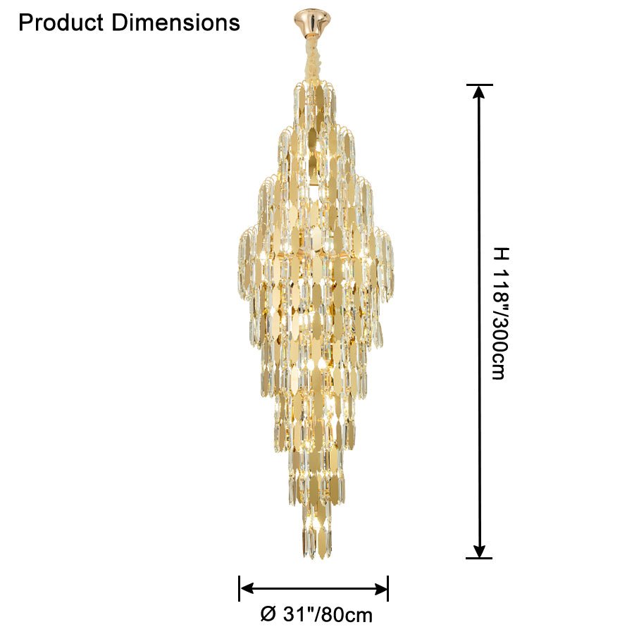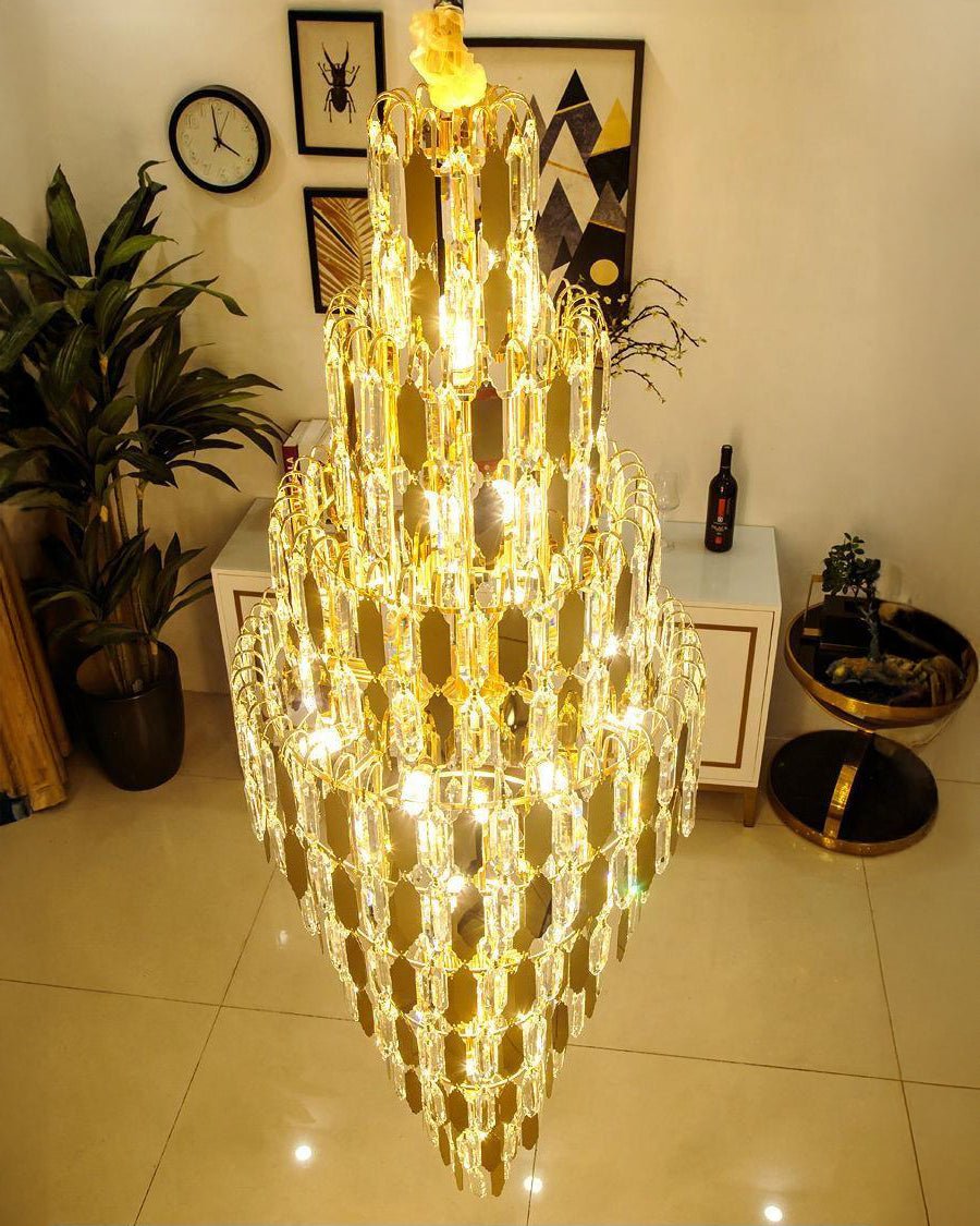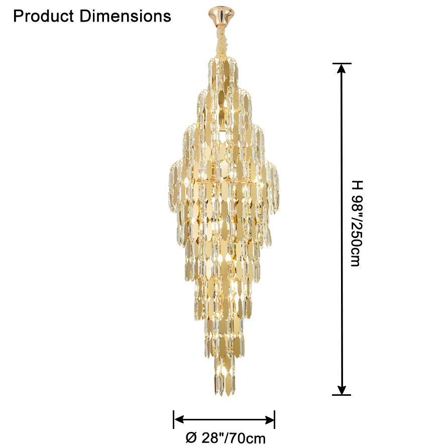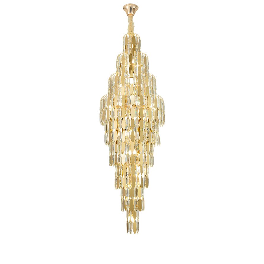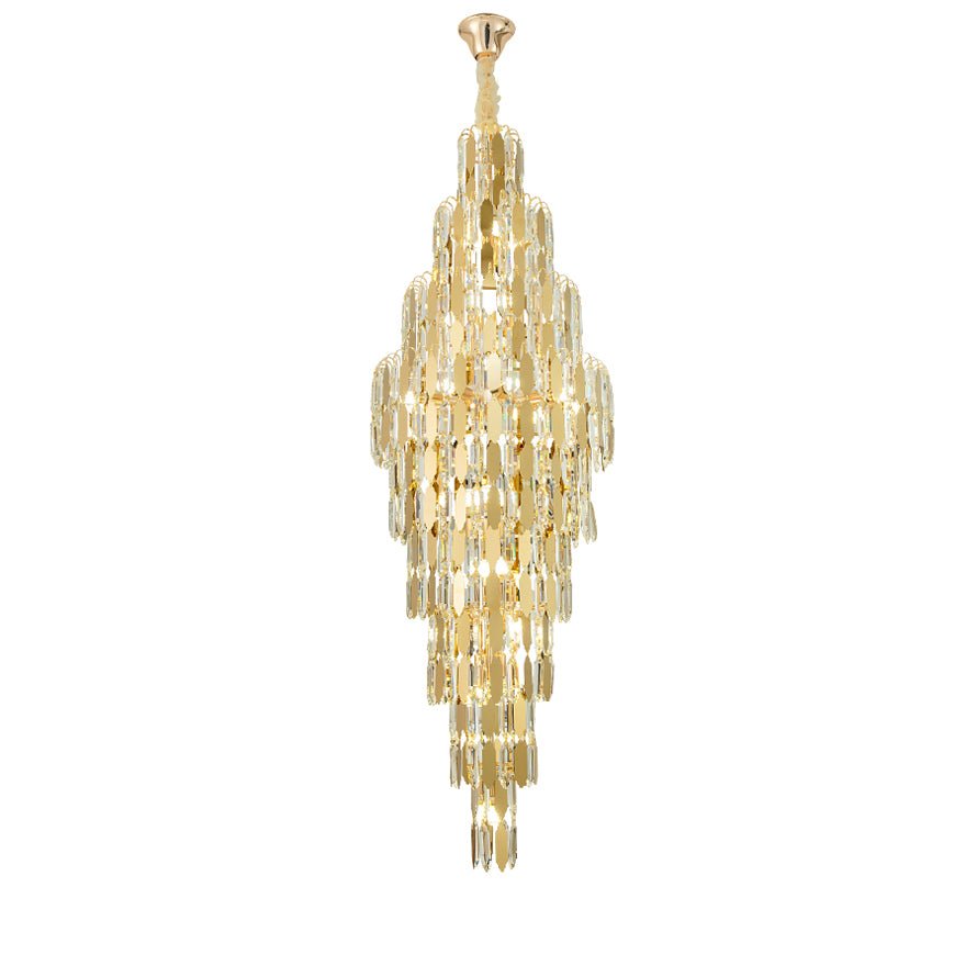 Elevate your space with the stunning jucci Tiered Tapers Crystal Chandelier. Its clear and smoked crystal design adds elegance to any staircase. Modern and contemporary, this chandelier is the perfect touch to any room. Experience the luxury and beauty of this exquisite piece.