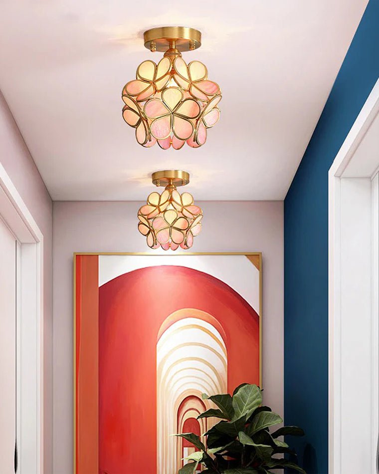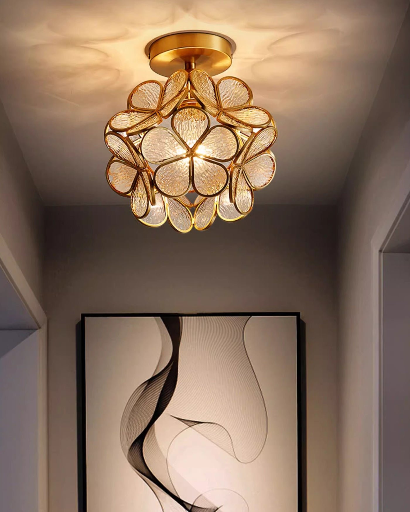 Transform your space with the stunning floral design of the Lume Stainless Glass Ceiling Light-WM1128. Featuring delicate flowers in shades of gold, pink, blue, or white, this light brings a touch of elegance to any room. Its glass and clear accents add an enchanting sparkle, making it perfect for hallways, bedrooms, and modern kitchens.