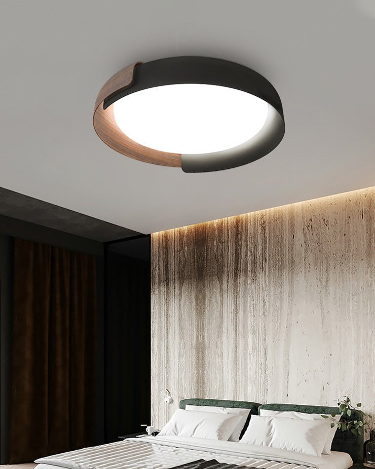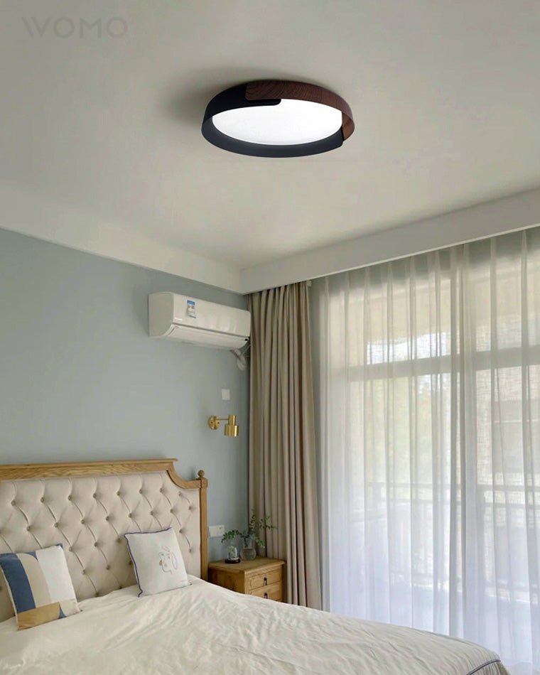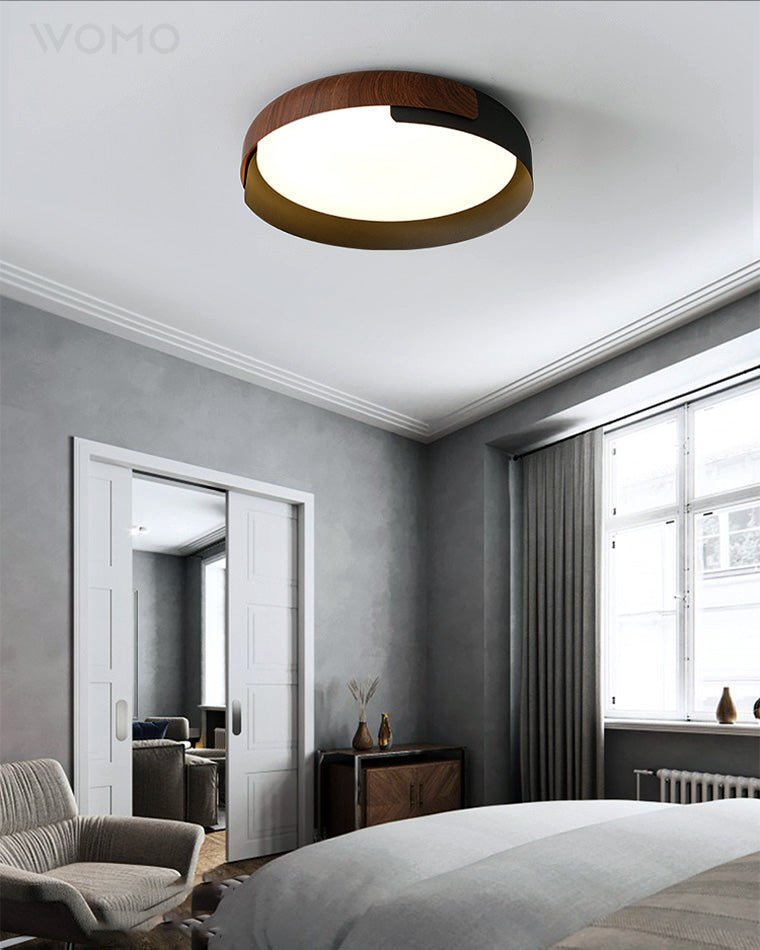 With the large diffuser surround by two metal housings, the Round Walnut Ceiling Light-WM1018 emits a particularly soft and pleasant ambient light, and it is dimmable with phase dimmer. With their refined contrast of colors and overlap like petals, they recall the natural movement of a corolla embracing the light. So it is perfect for illuminate and decorate you indoor space such as bedroom and hallway.