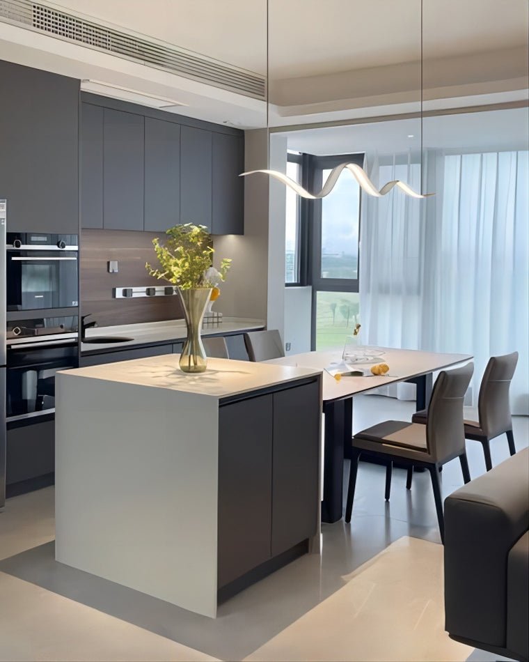 Enhance your dining room or kitchen with the stylish and modern jucci Wavy Led Pendant Light! Featuring a chic black and white design, this pendant light adds a touch of sophistication to any space. The wavy LED lights create a beautiful visual effect, perfect for creating a cozy and inviting atmosphere. Upgrade your home decor today!