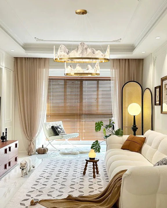 Illuminate your living room with our exquisite jucci Wavy Round Chandelier. The wavy acrylic design, combined with the gold and black finish, adds a touch of contemporary elegance to any space. Enhance your home’s ambiance and create a sense of luxurious style with this stunning chandelier.